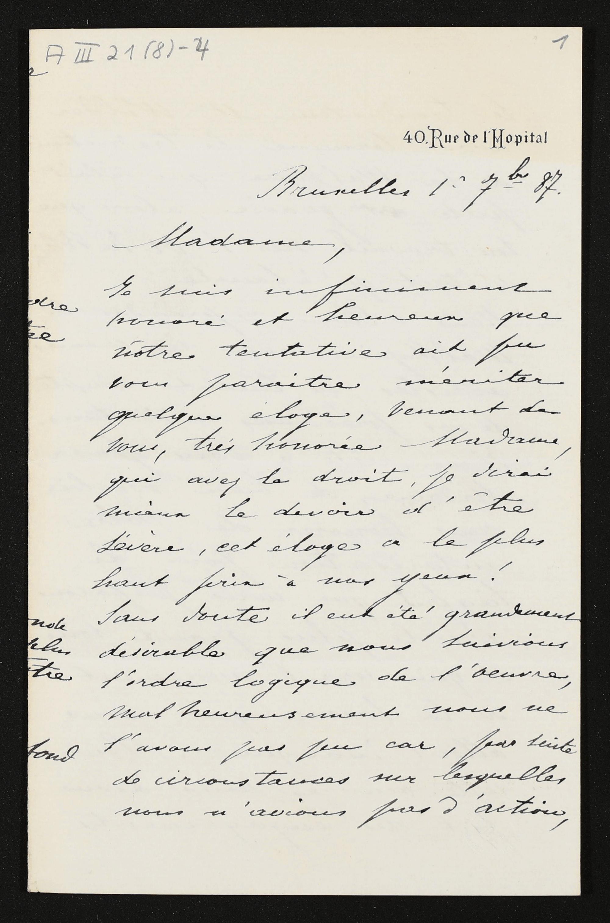 eigenhändiger Brief von Joseph Dupont an Cosima Wagner