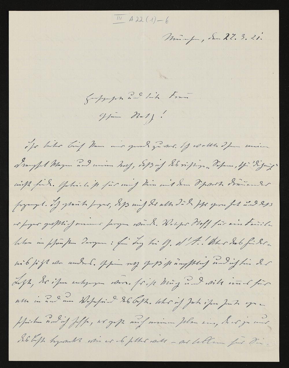 eigenhändiger Brief von Richard du Moulin an Daniela Thode