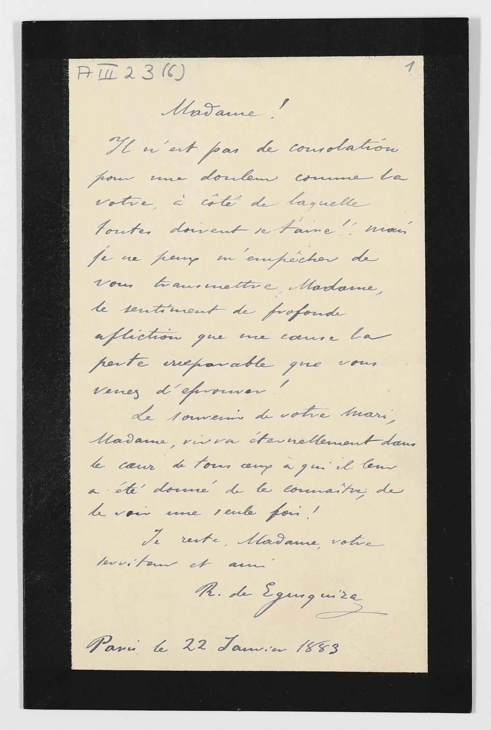 eigenhändiger Brief von R. de Egusquiza an Cosima Wagner