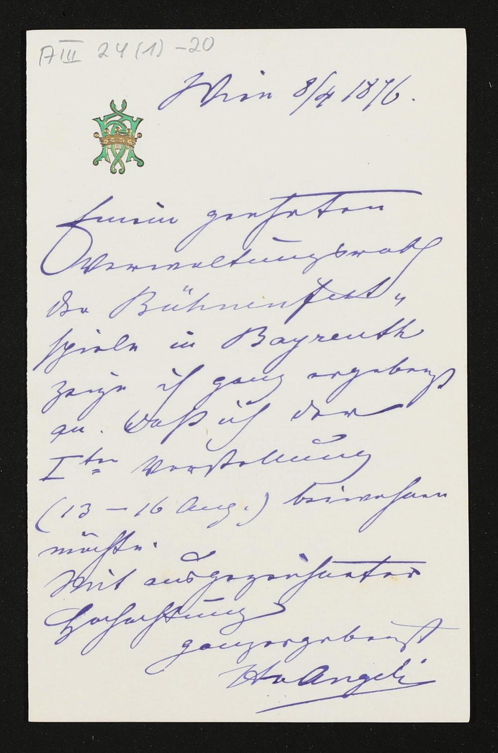eigenhändiger Brief von W. Angeli an den Verwaltungsrat der Bühnen-festspiele Bayreuth