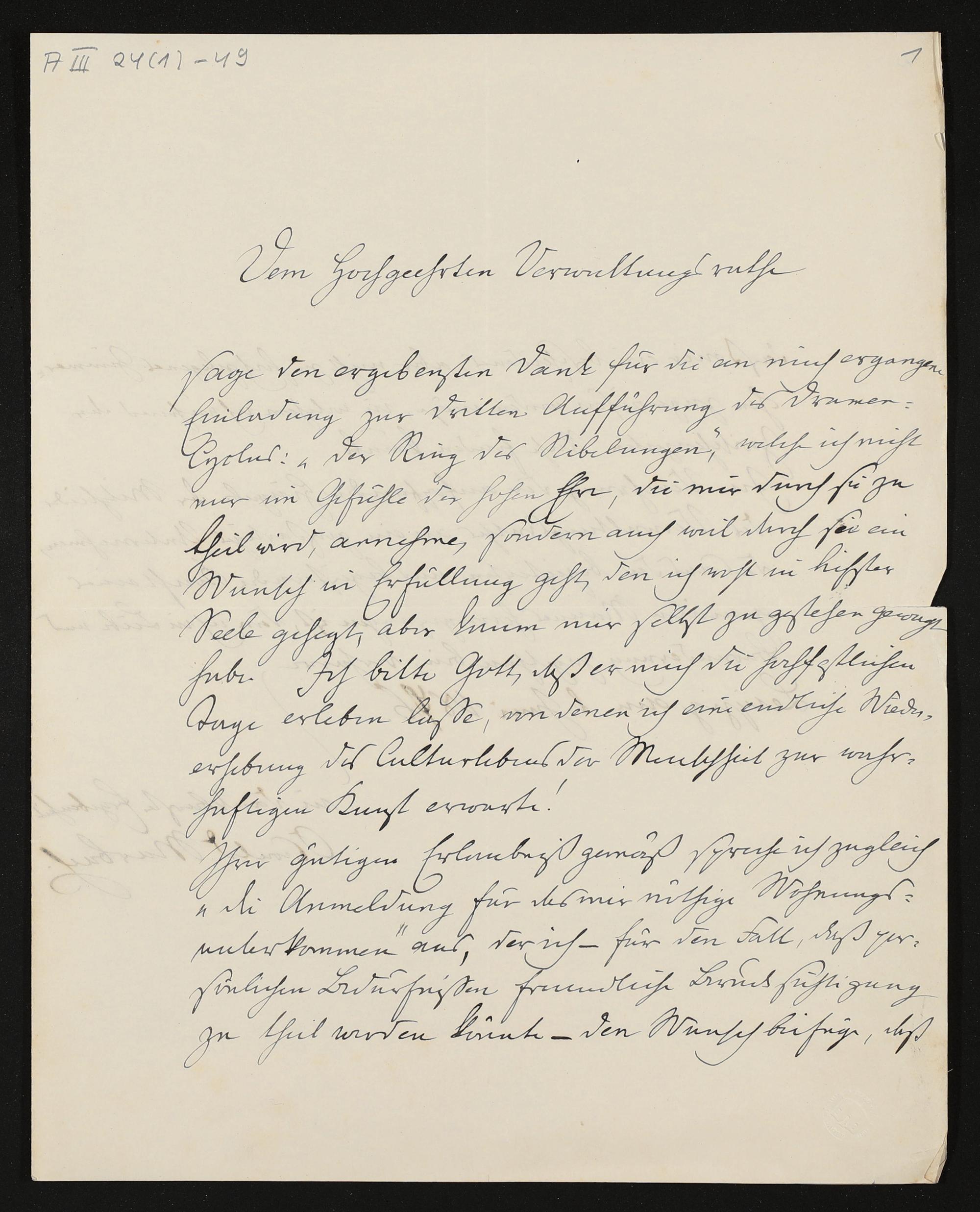 eigenhändiger Brief von Oswald Marbach an den Verwaltungsrat der Bühnenfestspiele