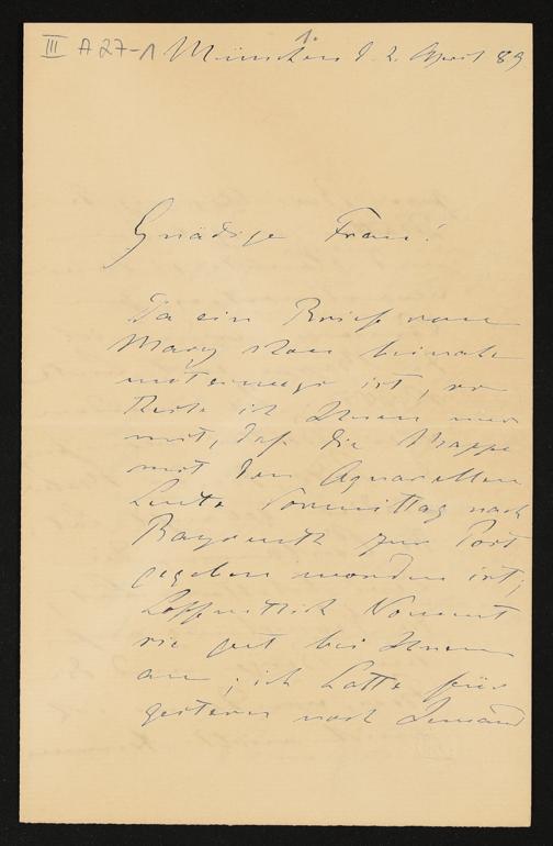 eigenhändiger Brief von Conrad Fiedler an Cosima Wagner