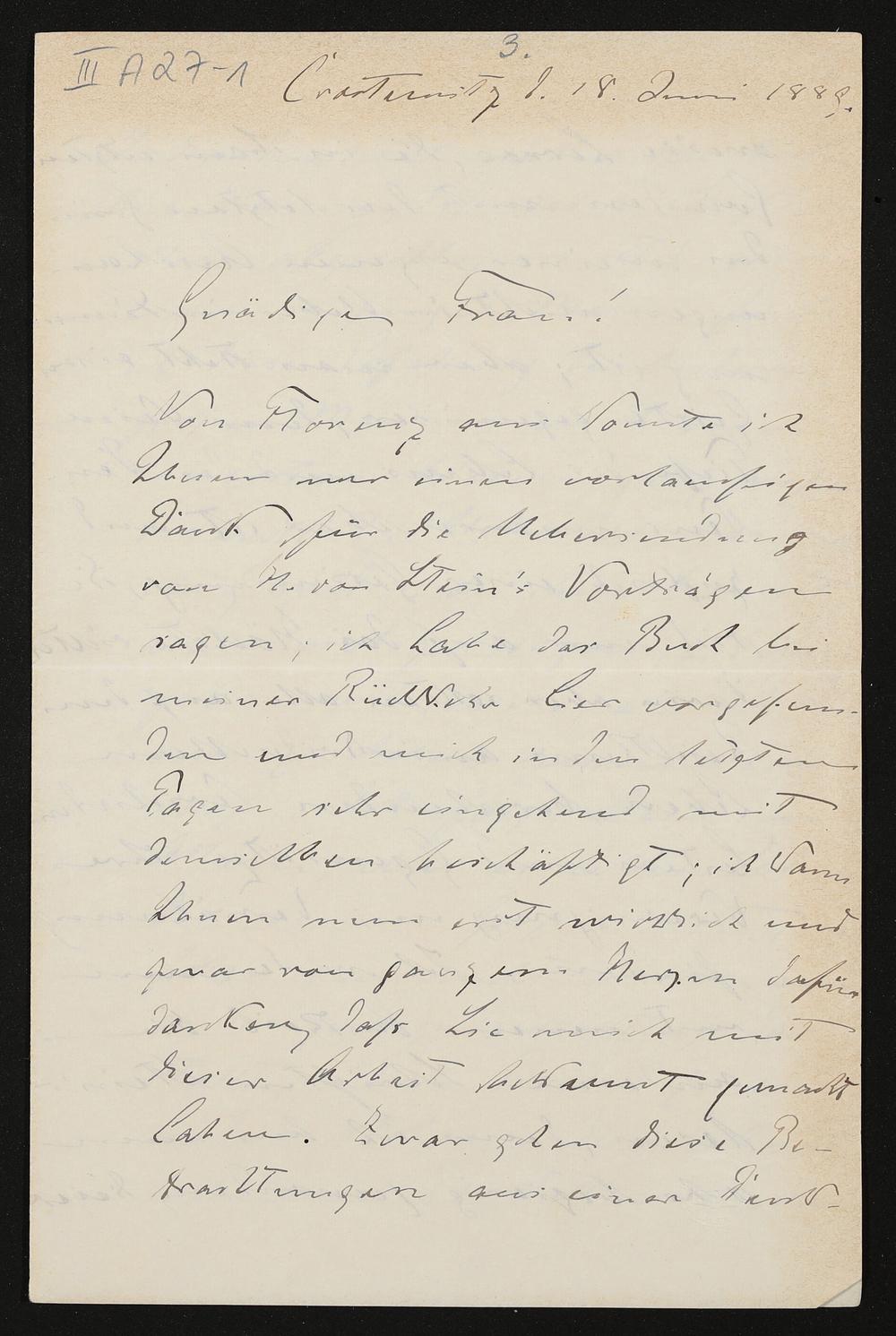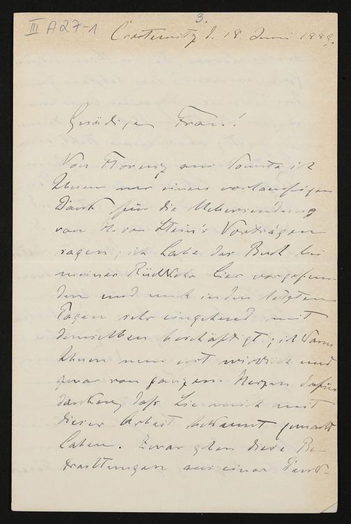 eigenhändiger Brief von Conrad Fiedler an Cosima Wagner