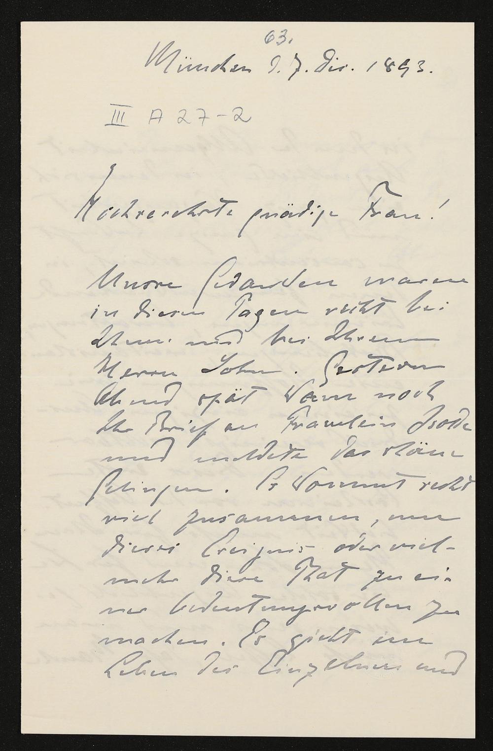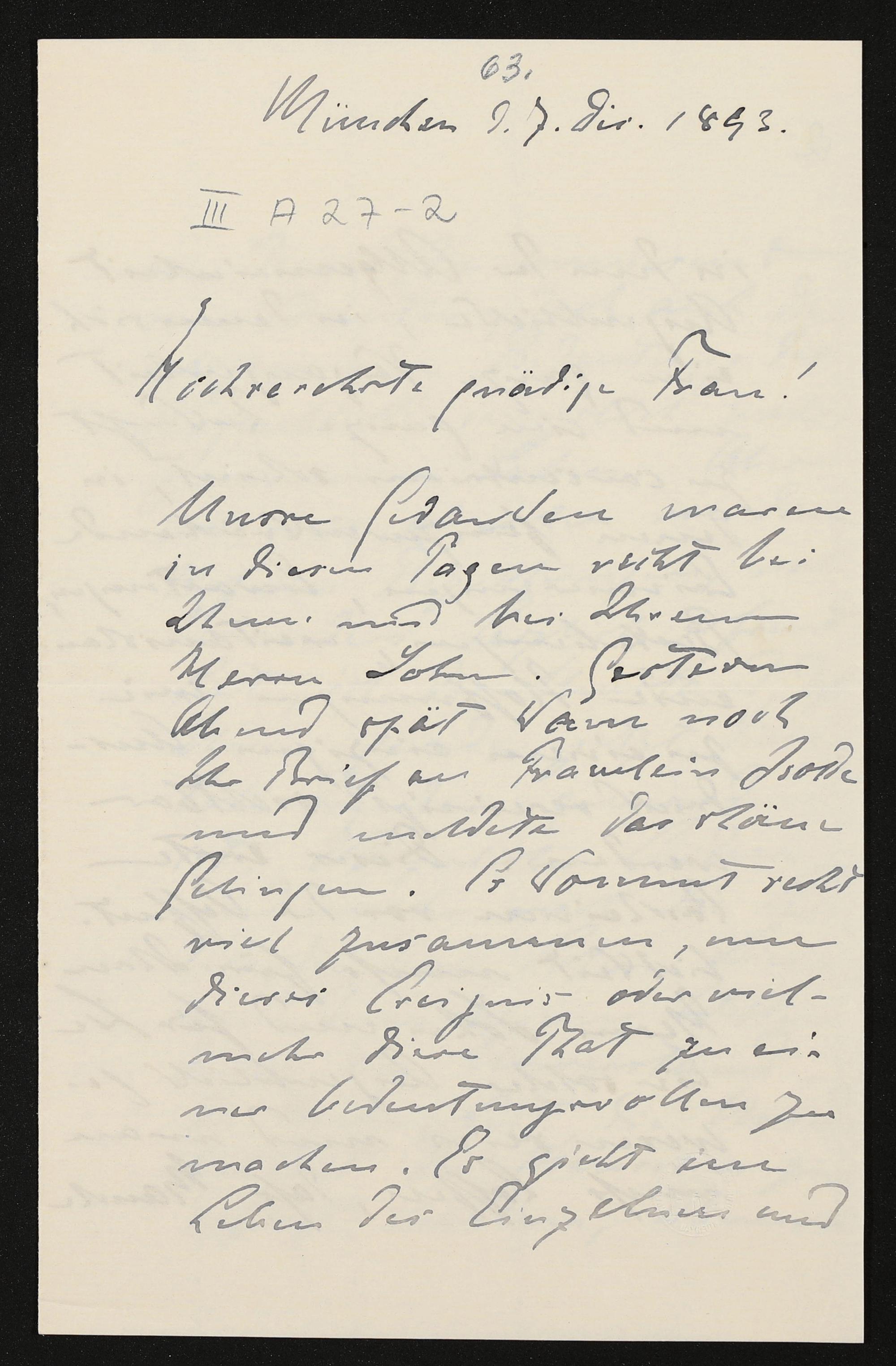 eigenhändiger Brief von Conrad Fiedler an Cosima Wagner