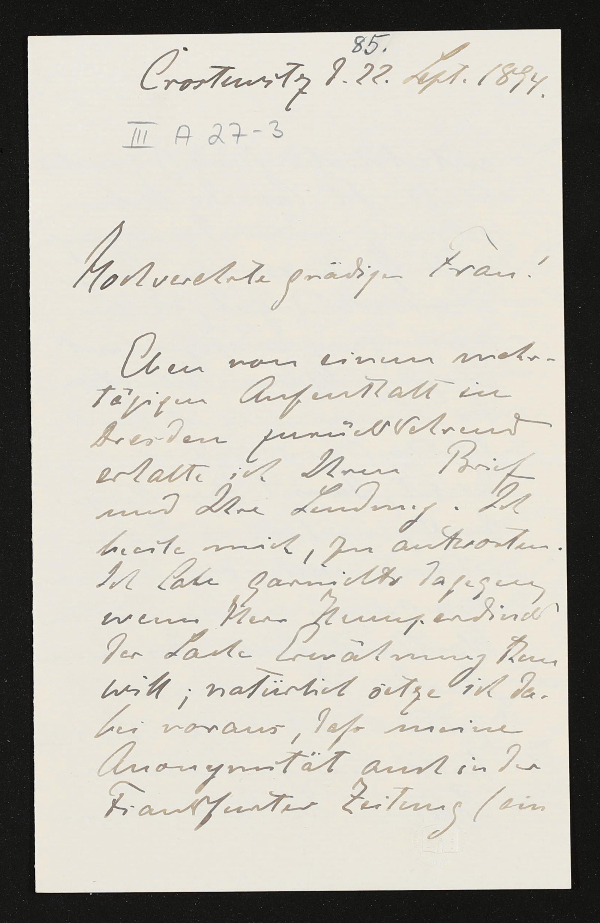 eigenhändiger Brief von Conrad Fiedler an Cosima Wagner