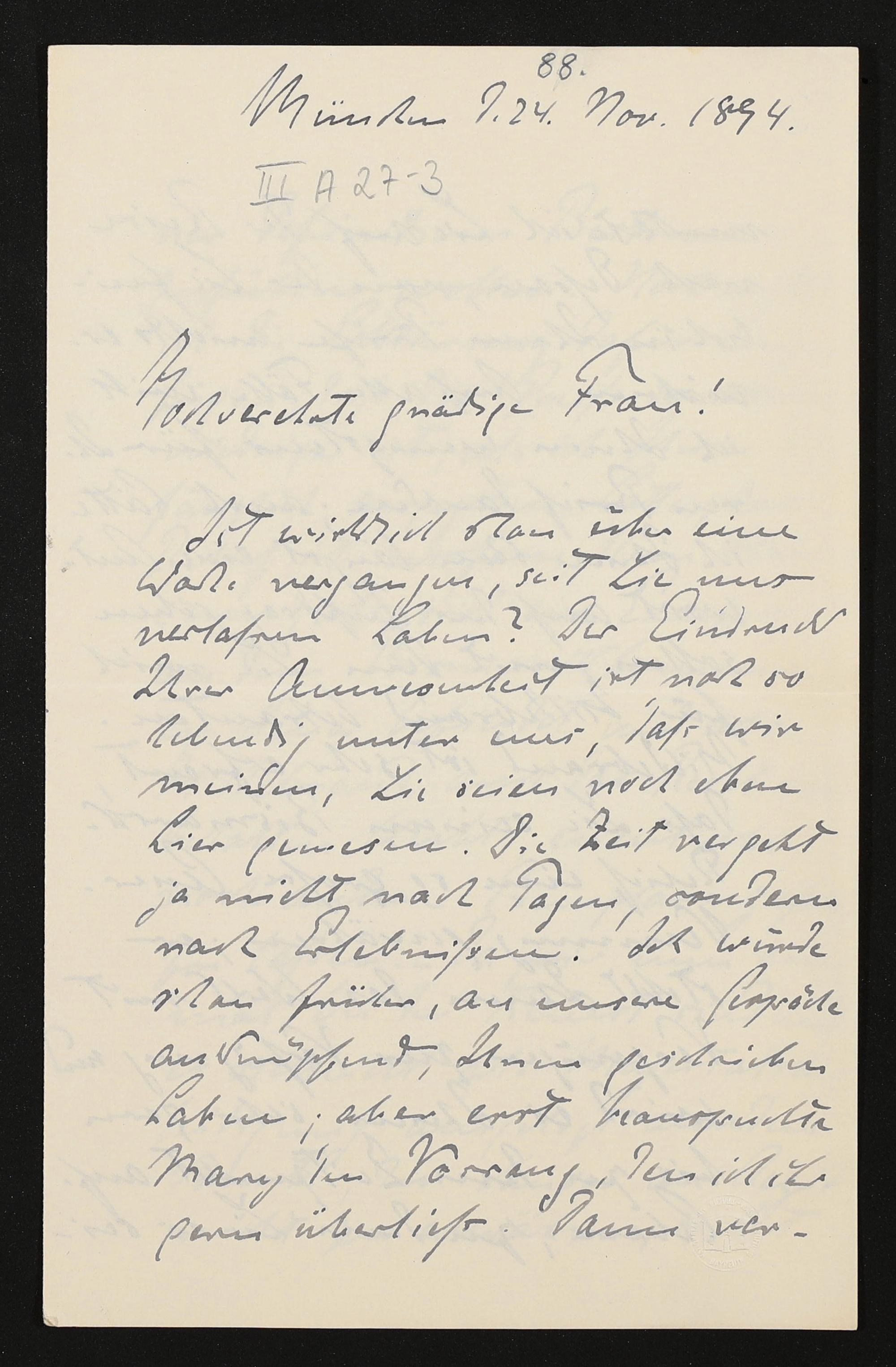 eigenhändiger Brief von Conrad Fiedler an Cosima Wagner