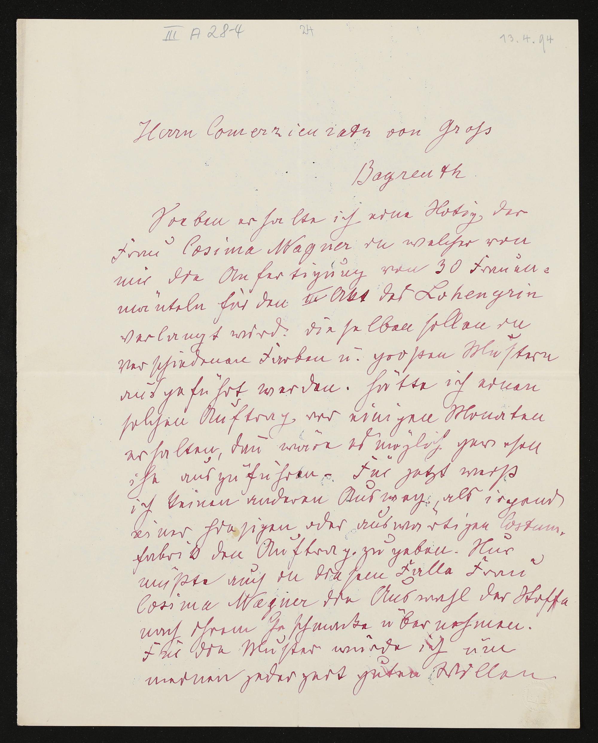 eigenhändiger Brief von Joseph Flüggen an Adolf von Gross