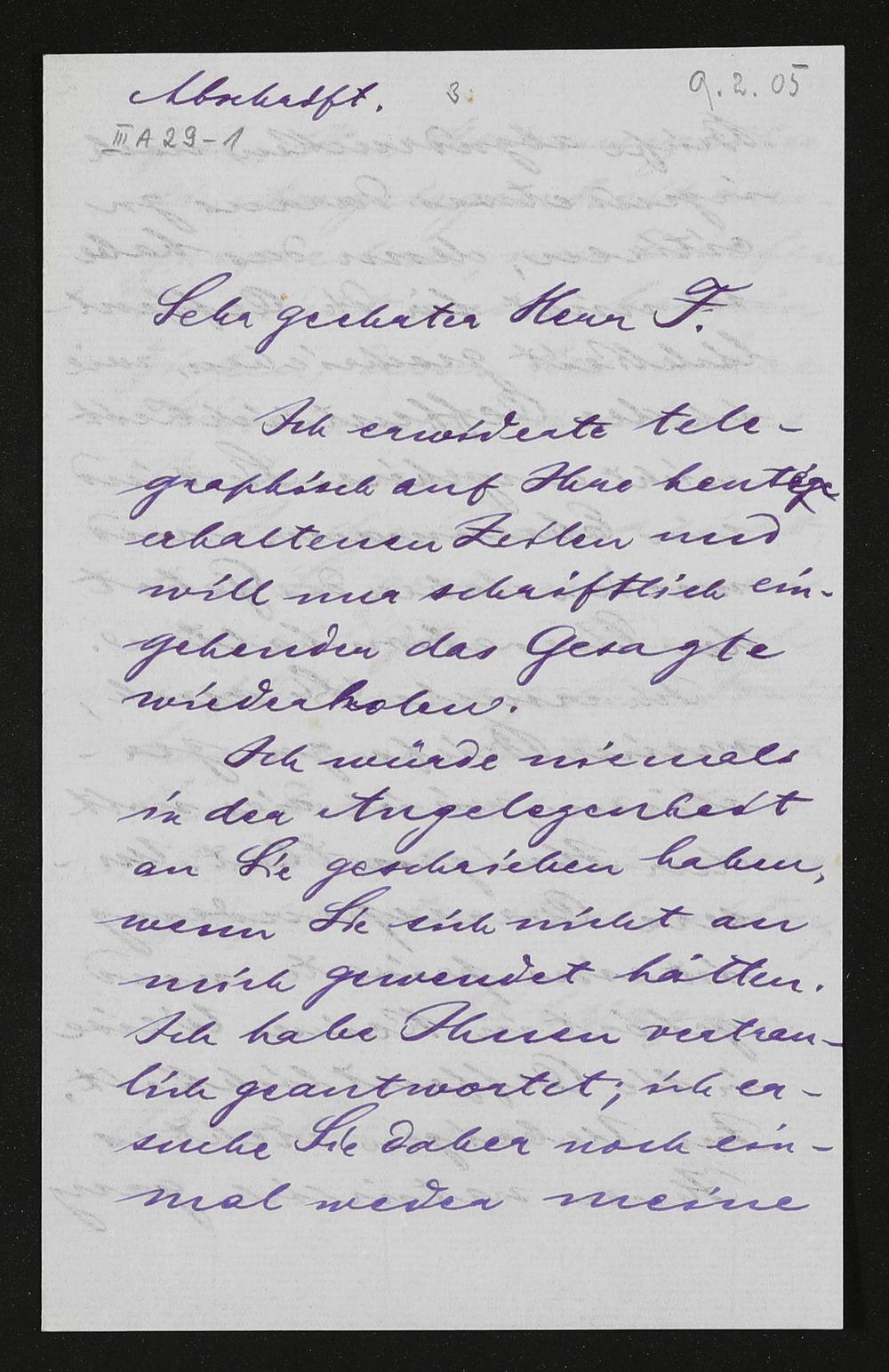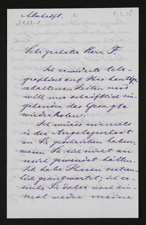 eigenhändiger Brief von Cosima Wagner an Eijnar Forchhammer