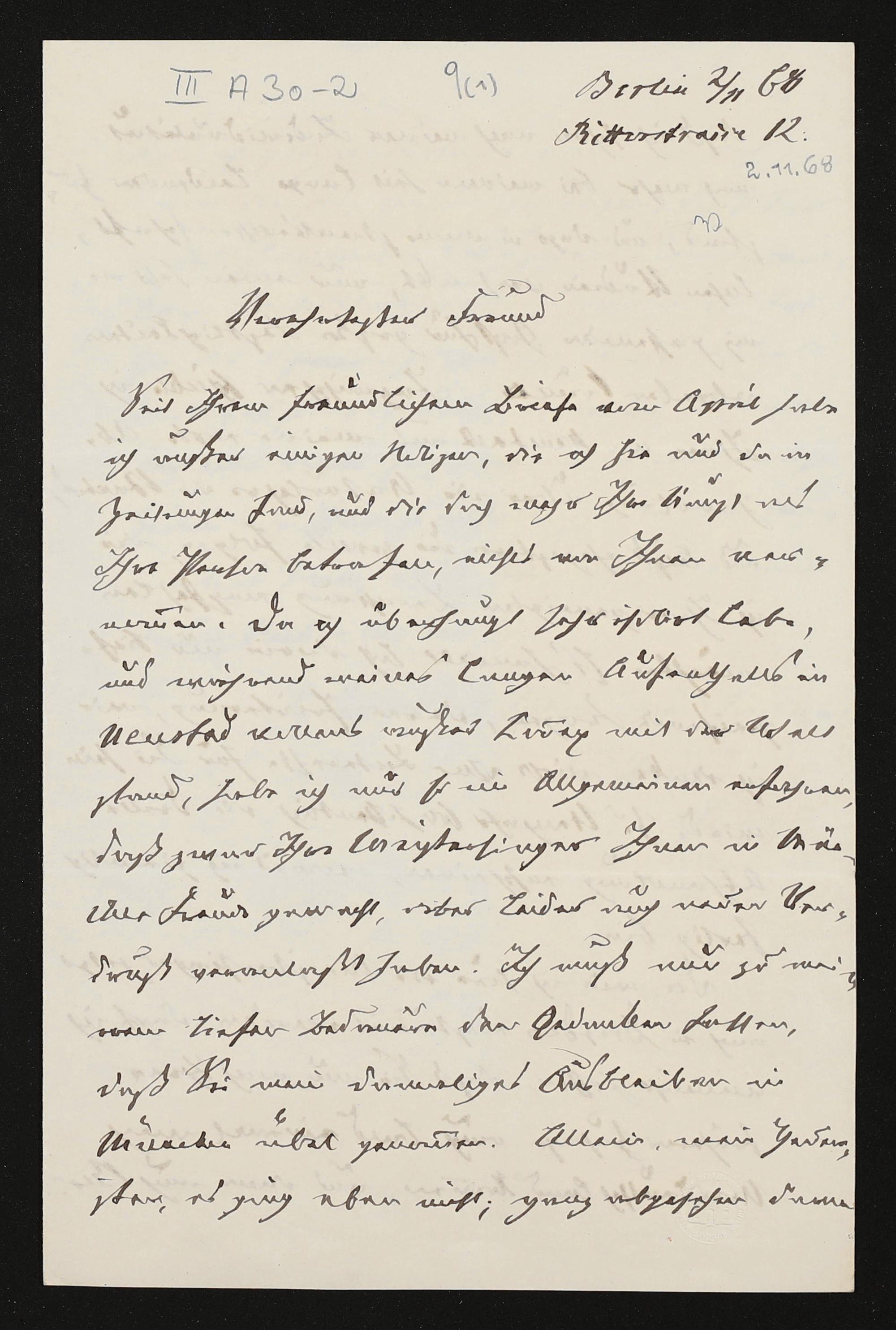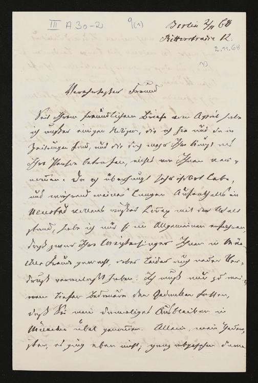 eigenhändiger Brief von Constantin Frantz an Richard Wagner