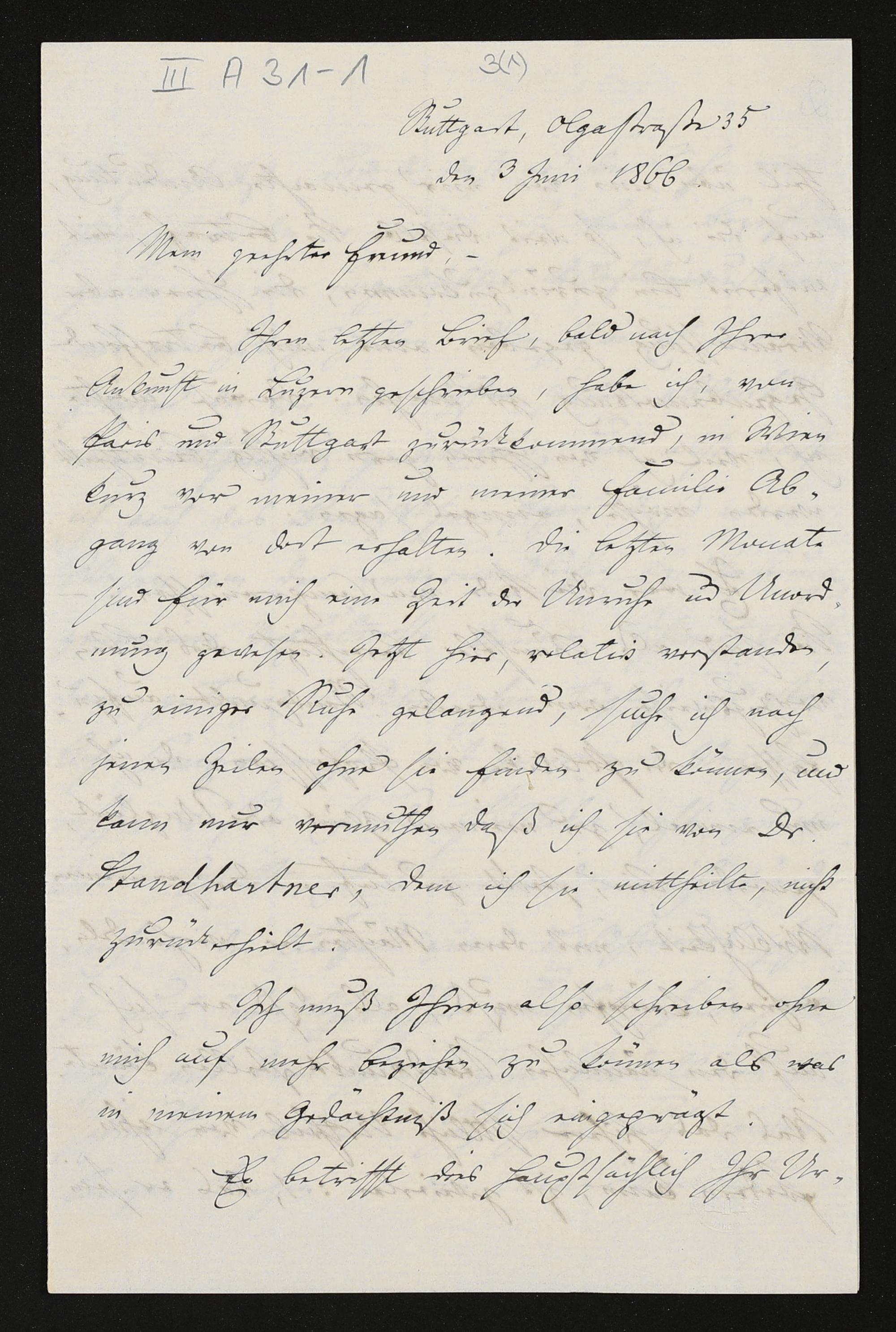 eigenhändiger Brief von Julius Fröbel an Richard Wagner