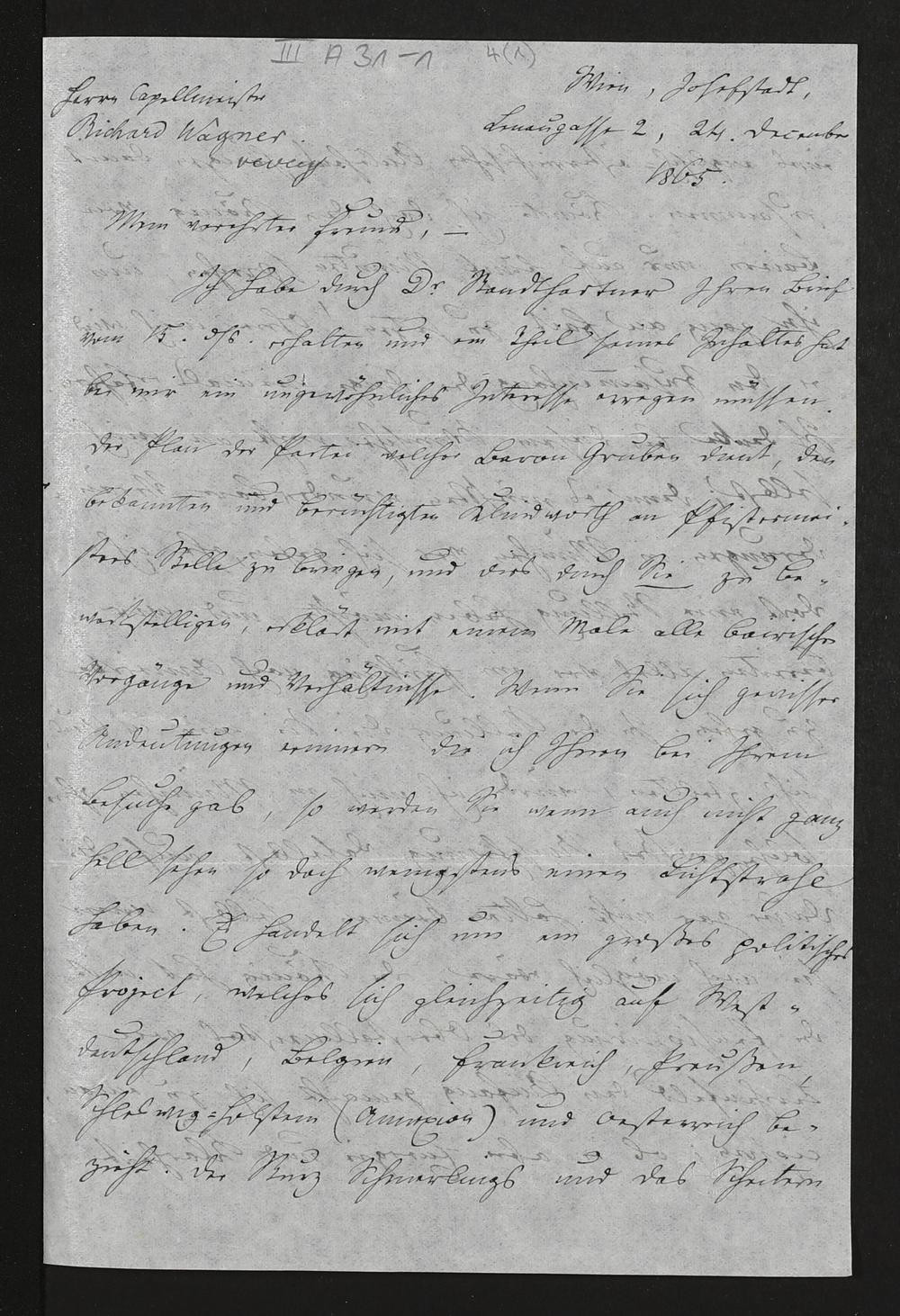 eigenhändiger Brief von Julius Fröbel an Richard Wagner