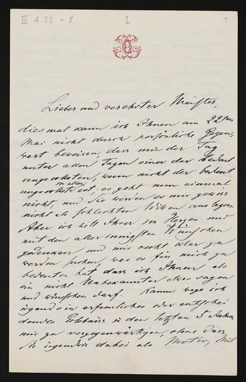 eigenhändiger Brief von Carl von Gersdorff an Richard Wagner