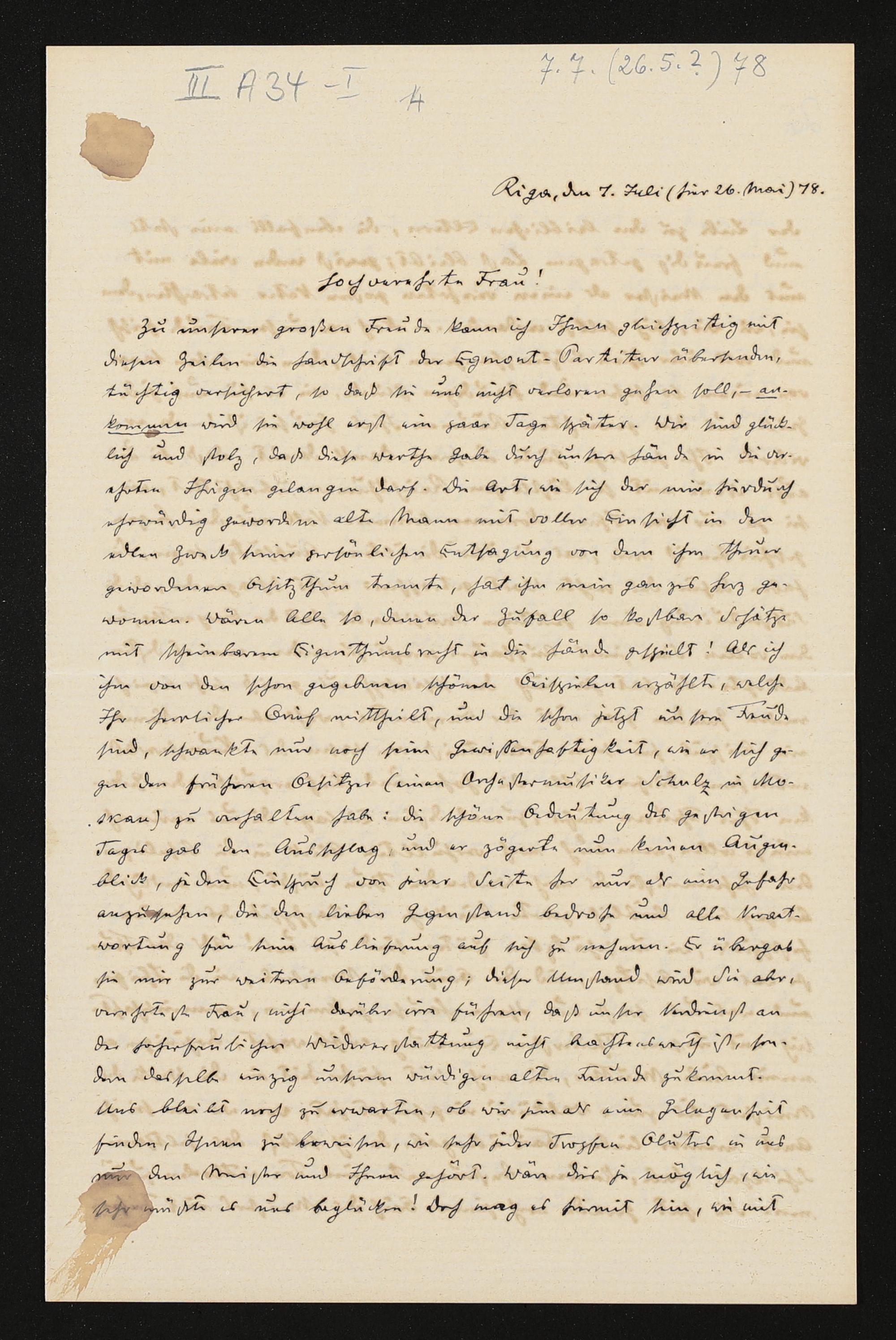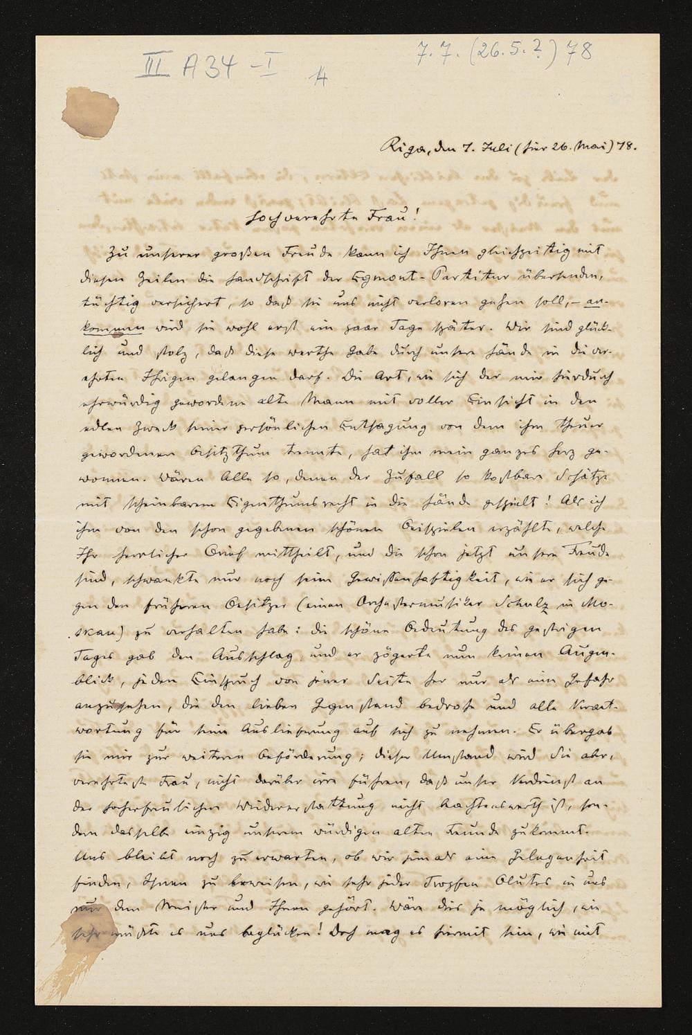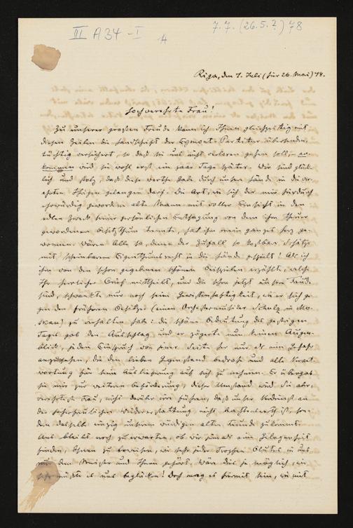 eigenhändiger Brief von Carl Friedrich Glasenapp an Cosima Wagner