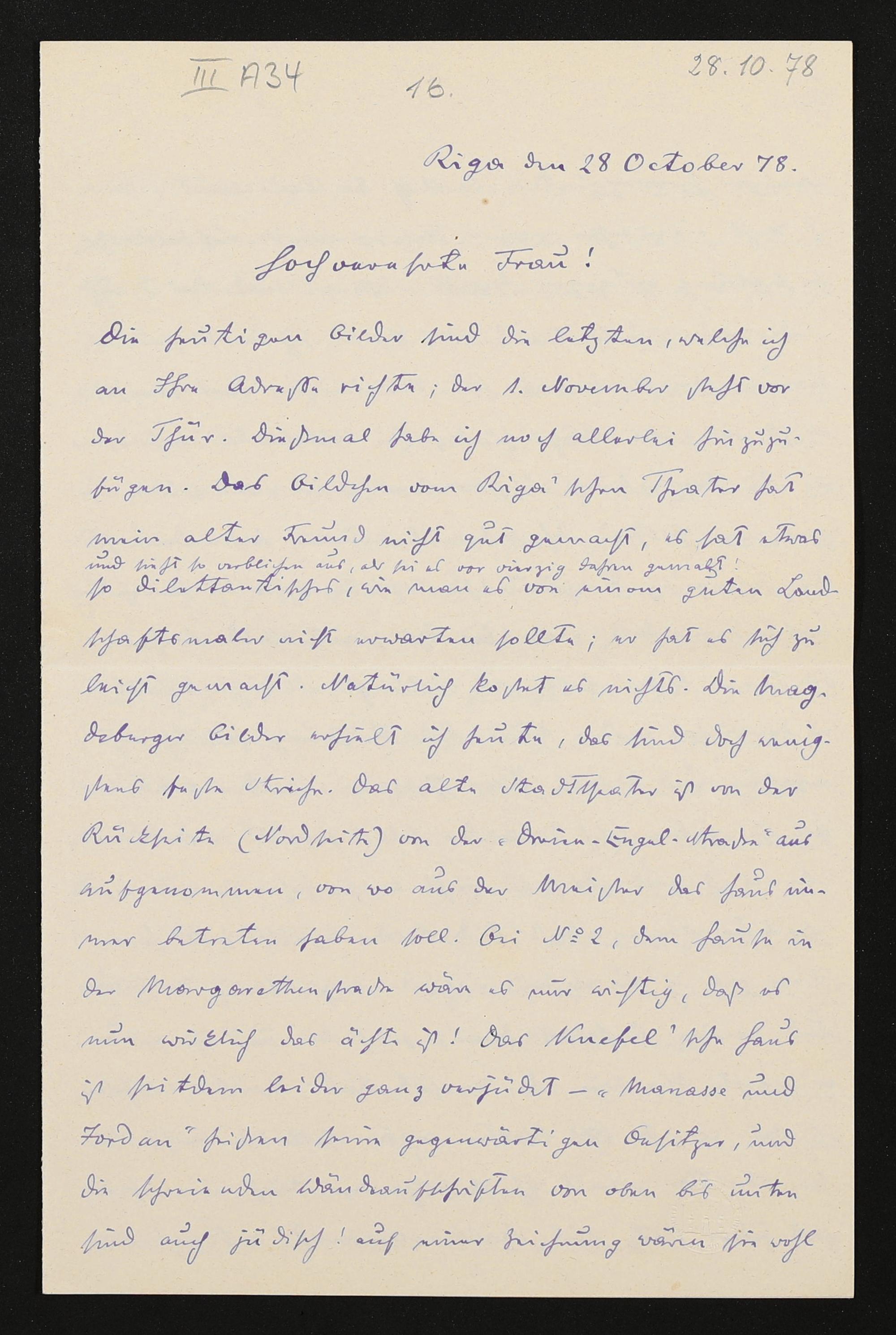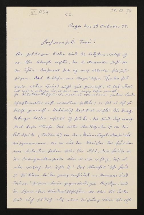 eigenhändiger Brief von Carl Friedrich Glasenapp an Cosima Wagner