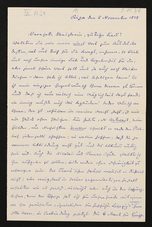 eigenhändiger Brief von Carl Friedrich Glasenapp an Cosima Wagner