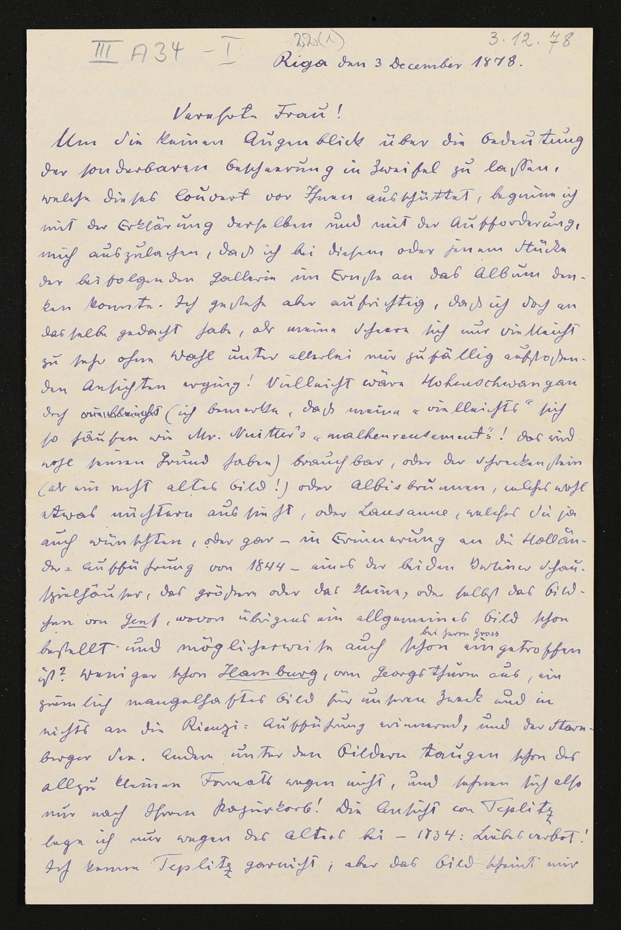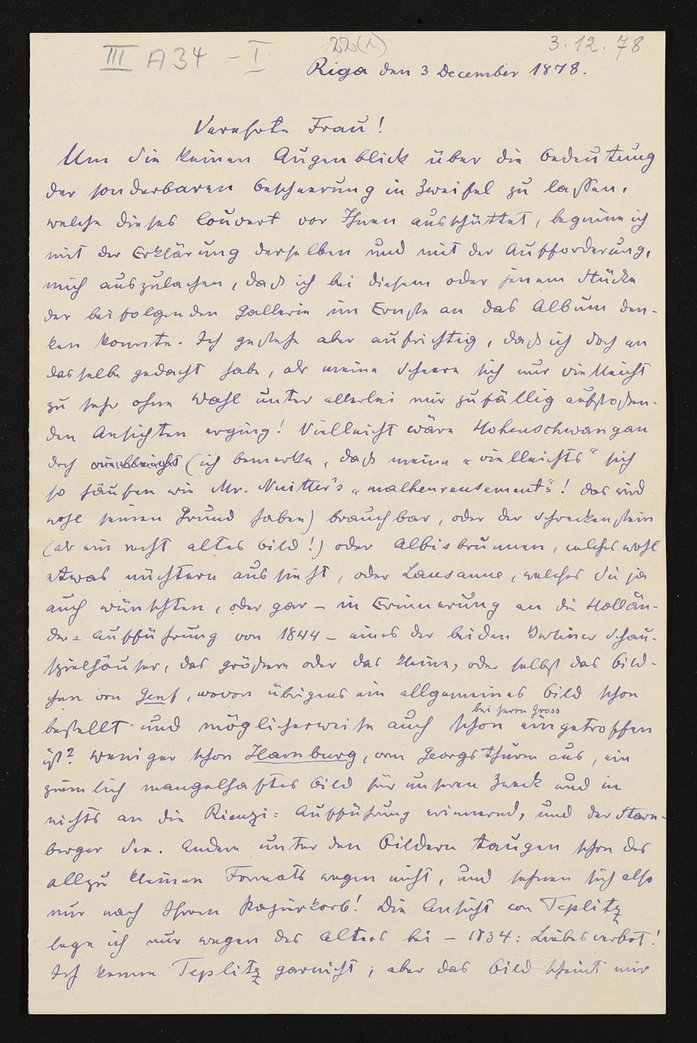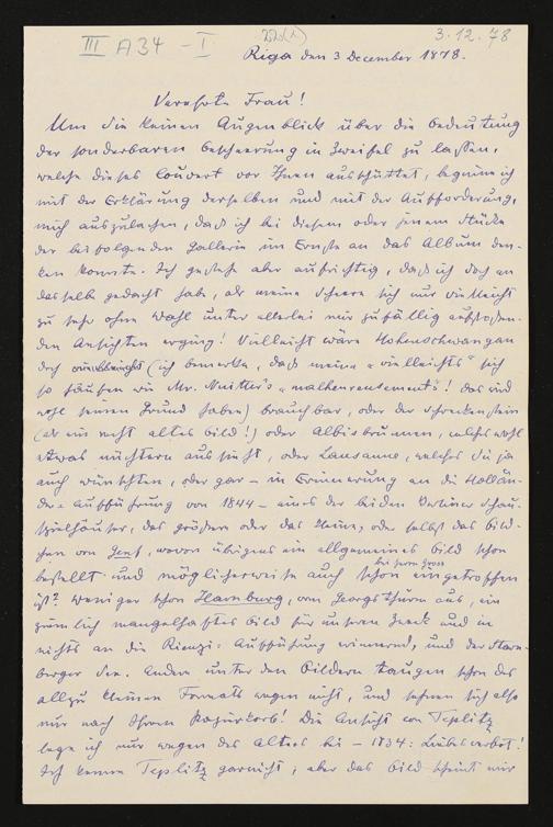 eigenhändiger Brief von Carl Friedrich Glasenapp an Cosima Wagner