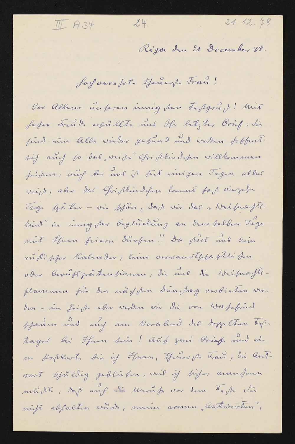 eigenhändiger Brief von Carl Friedrich Glasenapp und Henriette Glasenapp an Cosima Wagner
