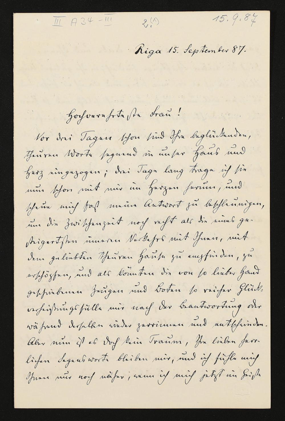 eigenhändiger Brief von Carl Friedrich Glasenapp an Cosima Wagner