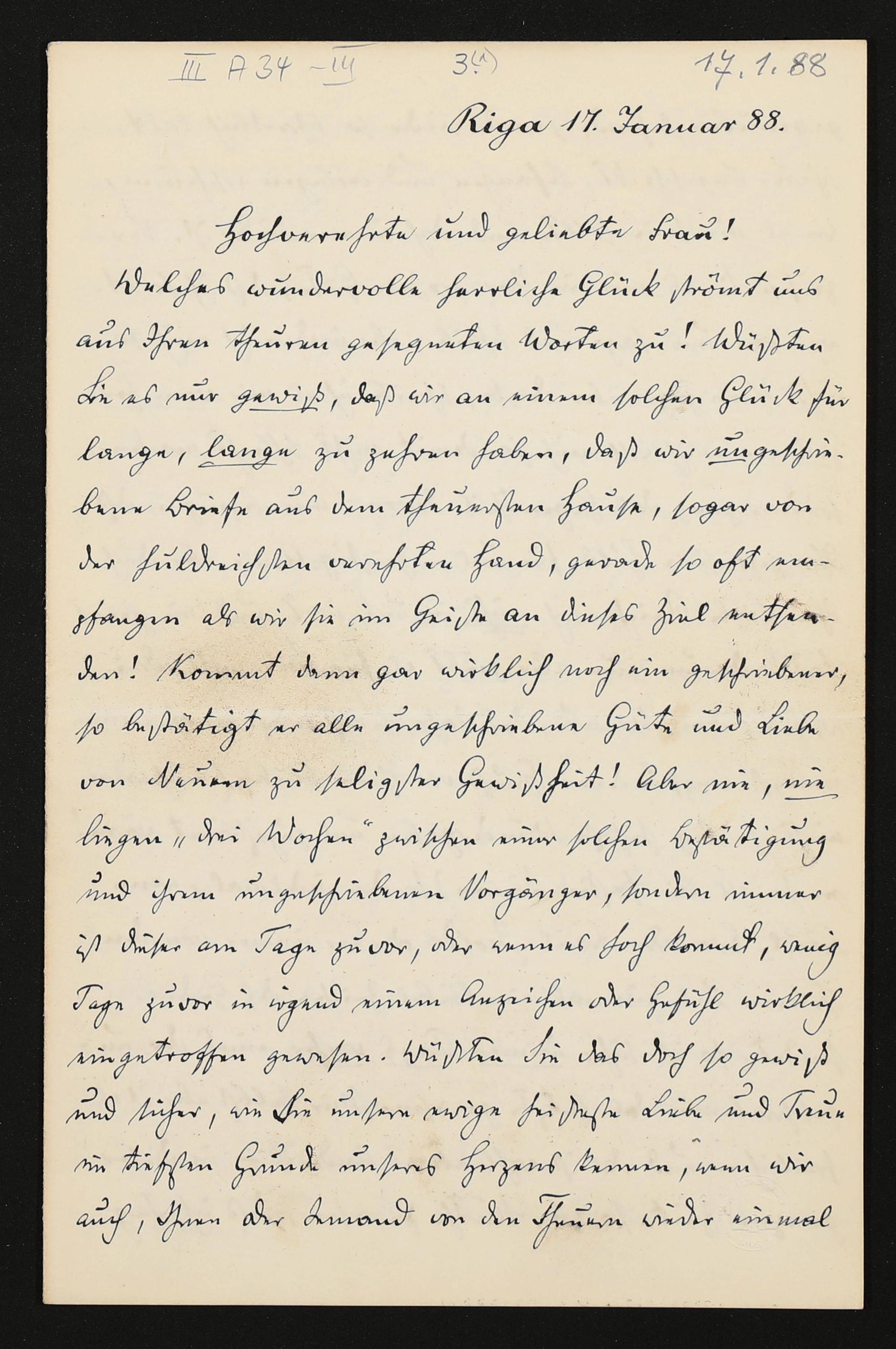 eigenhändiger Brief von Carl Friedrich Glasenapp an Cosima Wagner