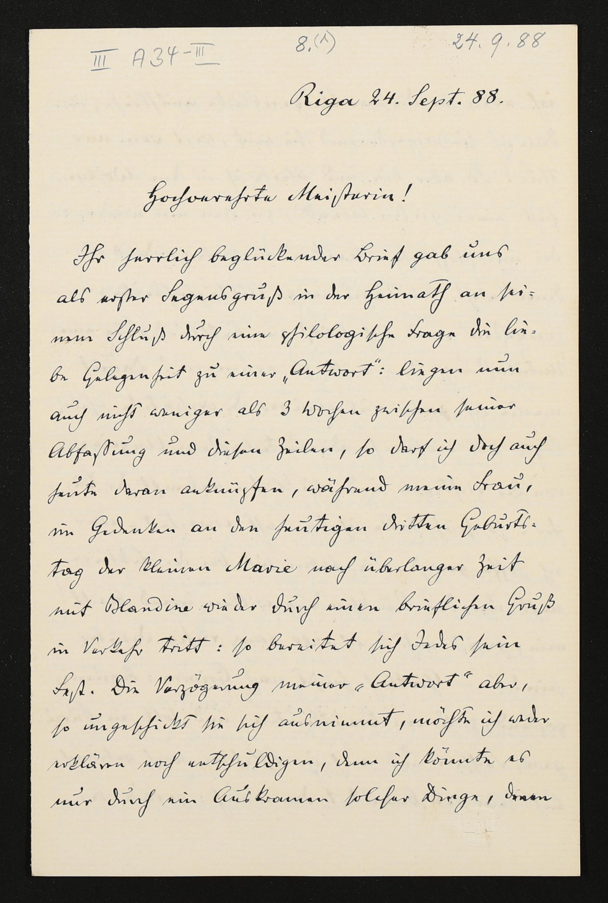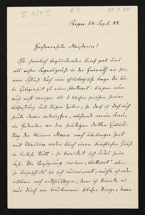 eigenhändiger Brief von Carl Friedrich Glasenapp an Cosima Wagner