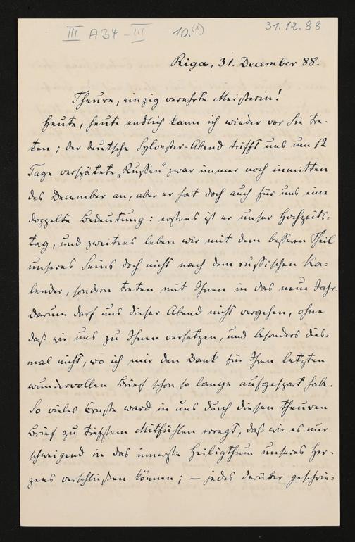 eigenhändiger Brief von Carl Friedrich Glasenapp an Cosima Wagner