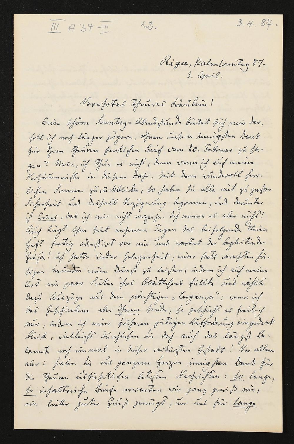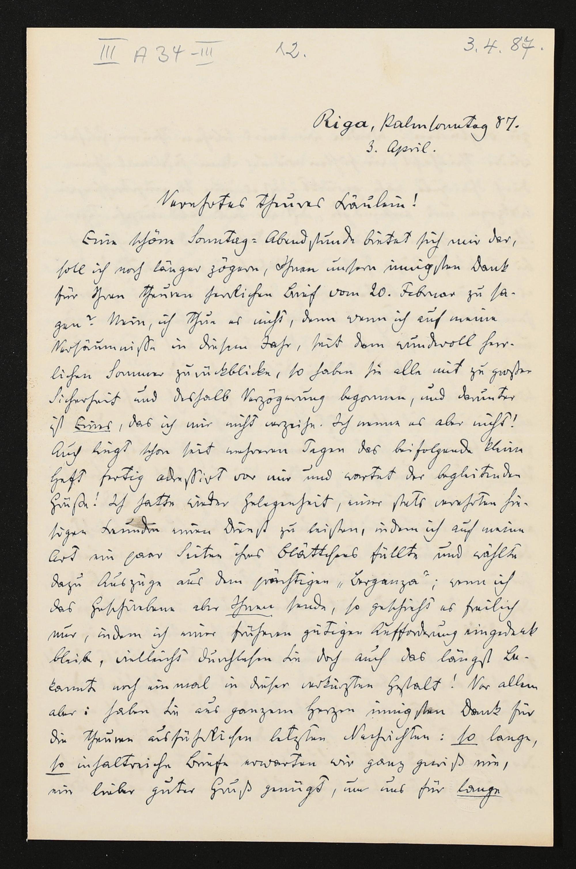 eigenhändiger Brief von Carl Friedrich Glasenapp an Eva Wagner