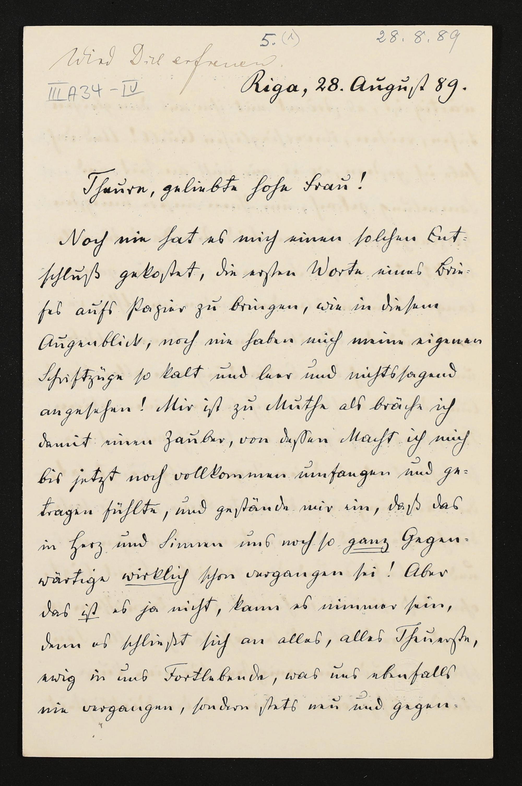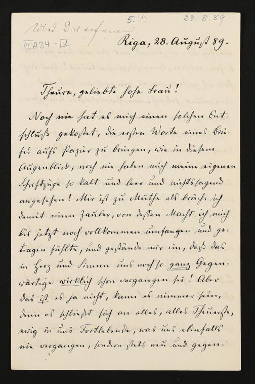 eigenhändiger Brief von Carl Friedrich Glasenapp an Cosima Wagner