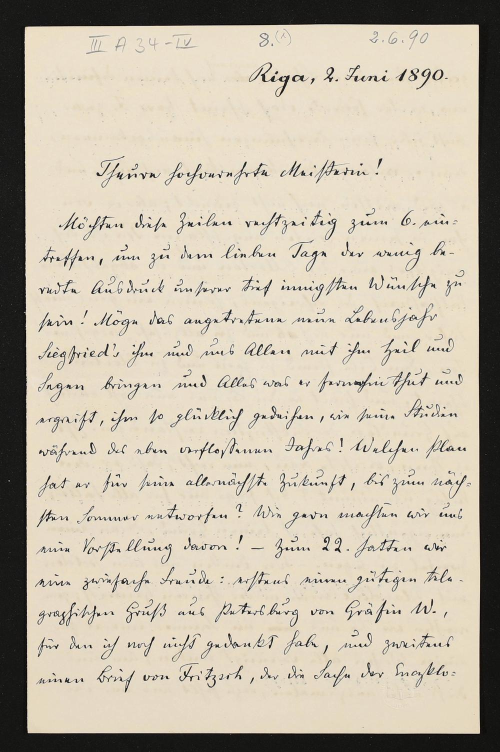 eigenhändiger Brief von Carl Friedrich Glasenapp an Cosima Wagner