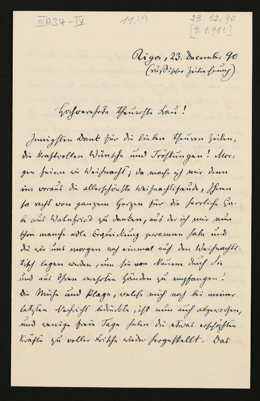eigenhändiger Brief von Carl Friedrich Glasenapp an Cosima Wagner