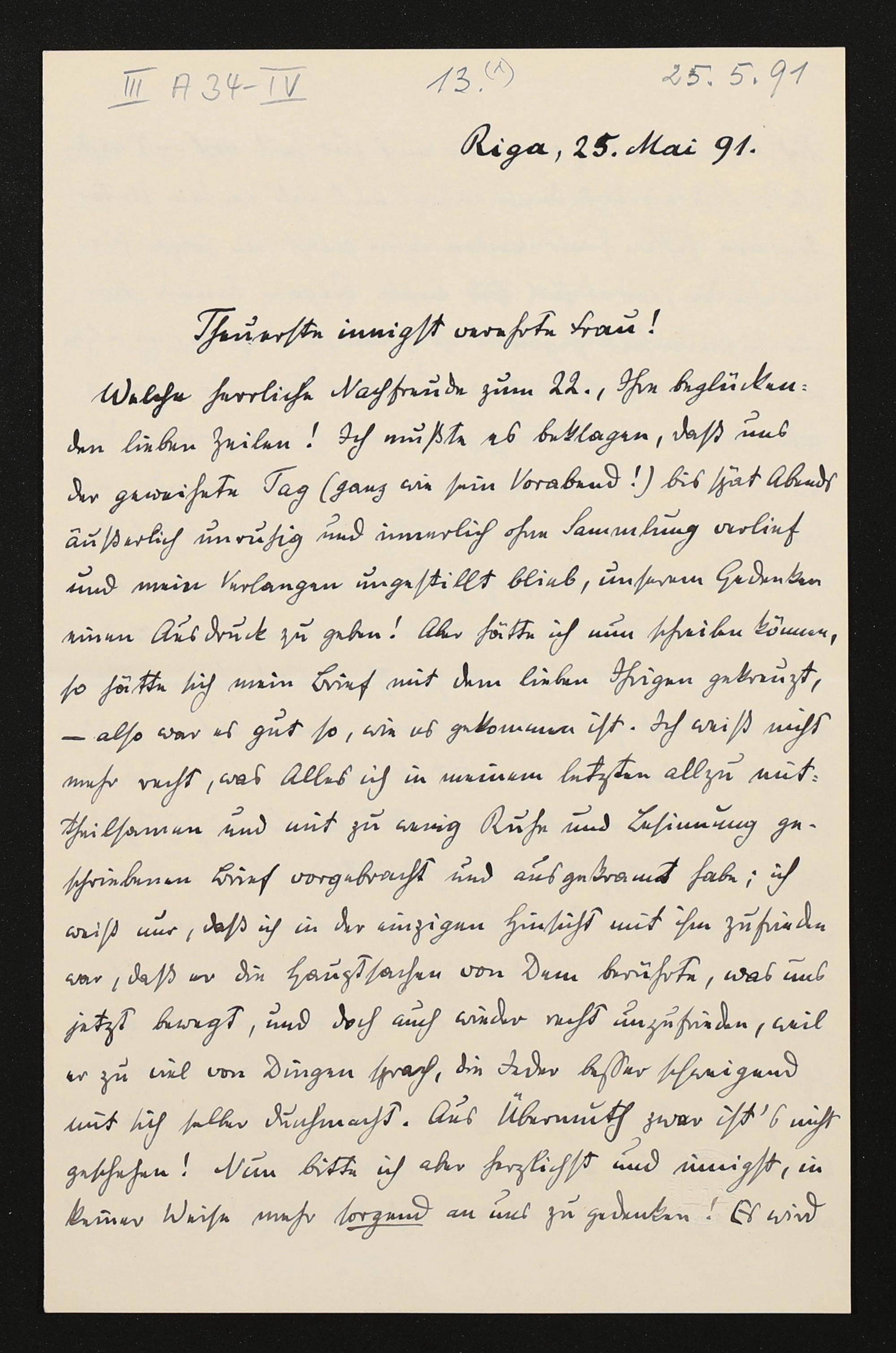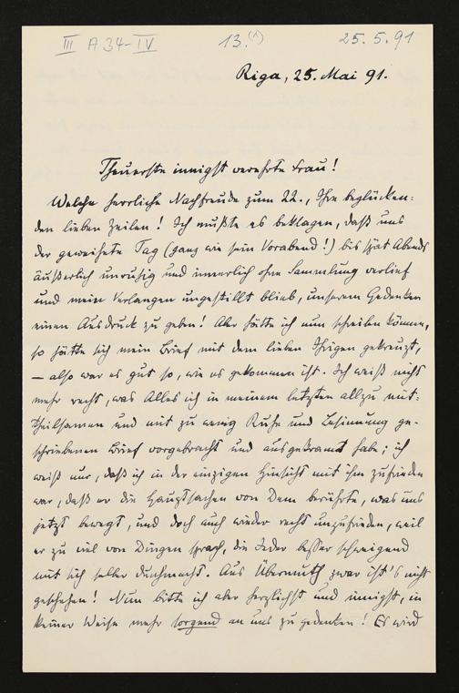 eigenhändiger Brief von Carl Friedrich Glasenapp an Cosima Wagner