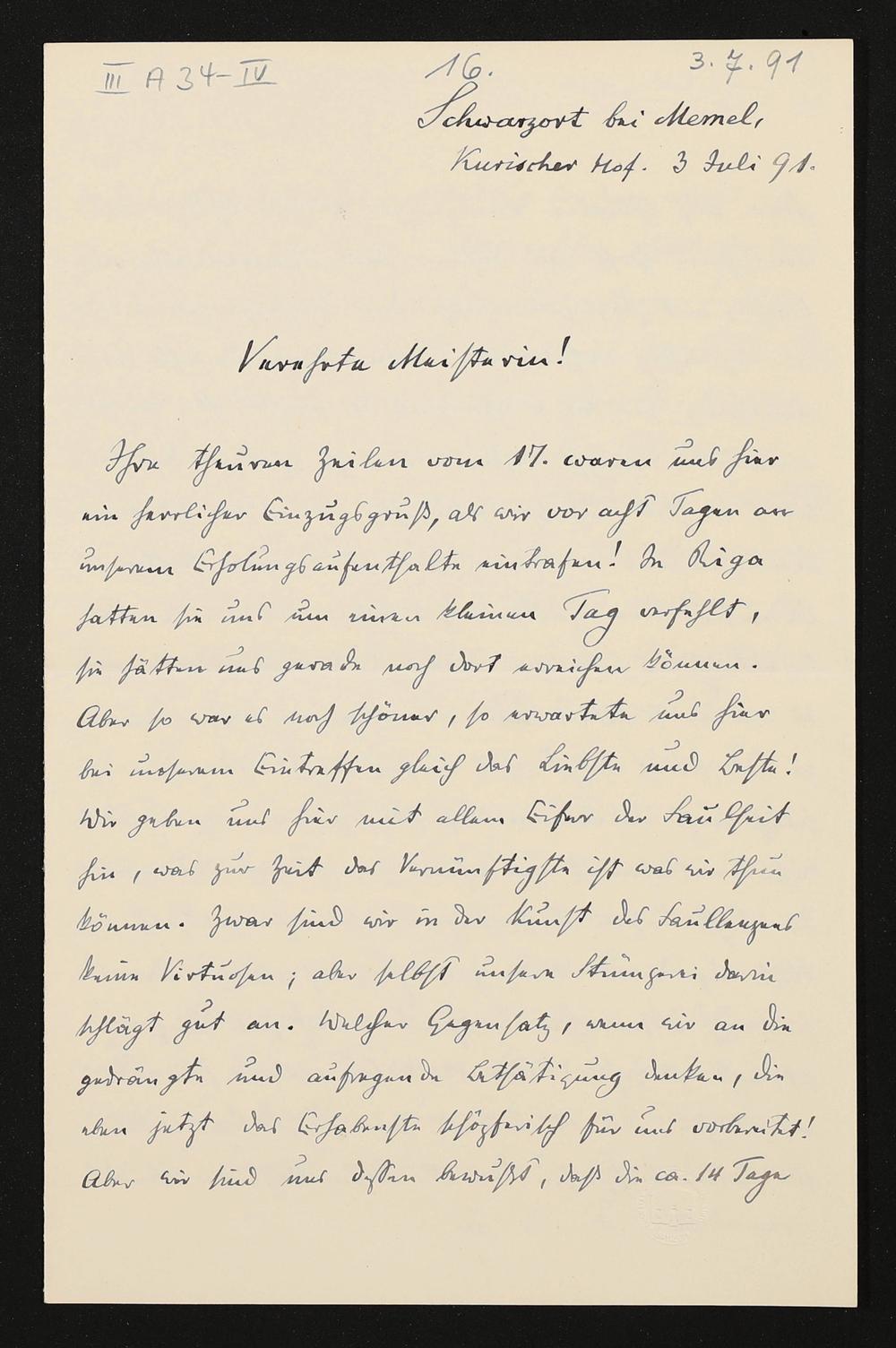 eigenhändiger Brief von Carl Friedrich Glasenapp an Cosima Wagner