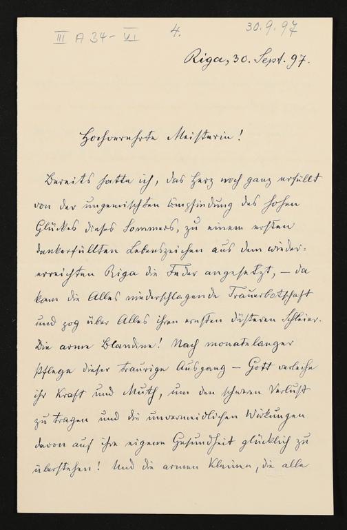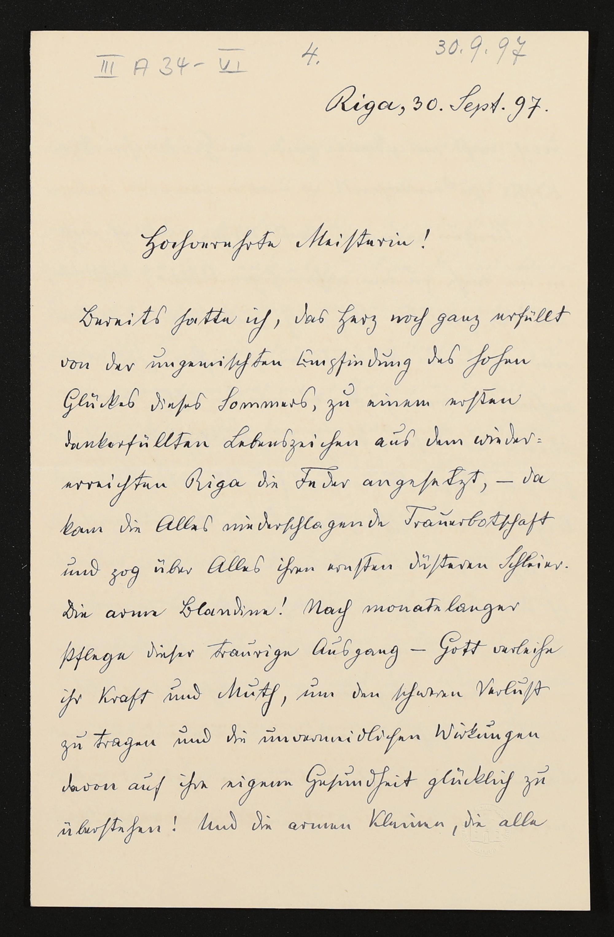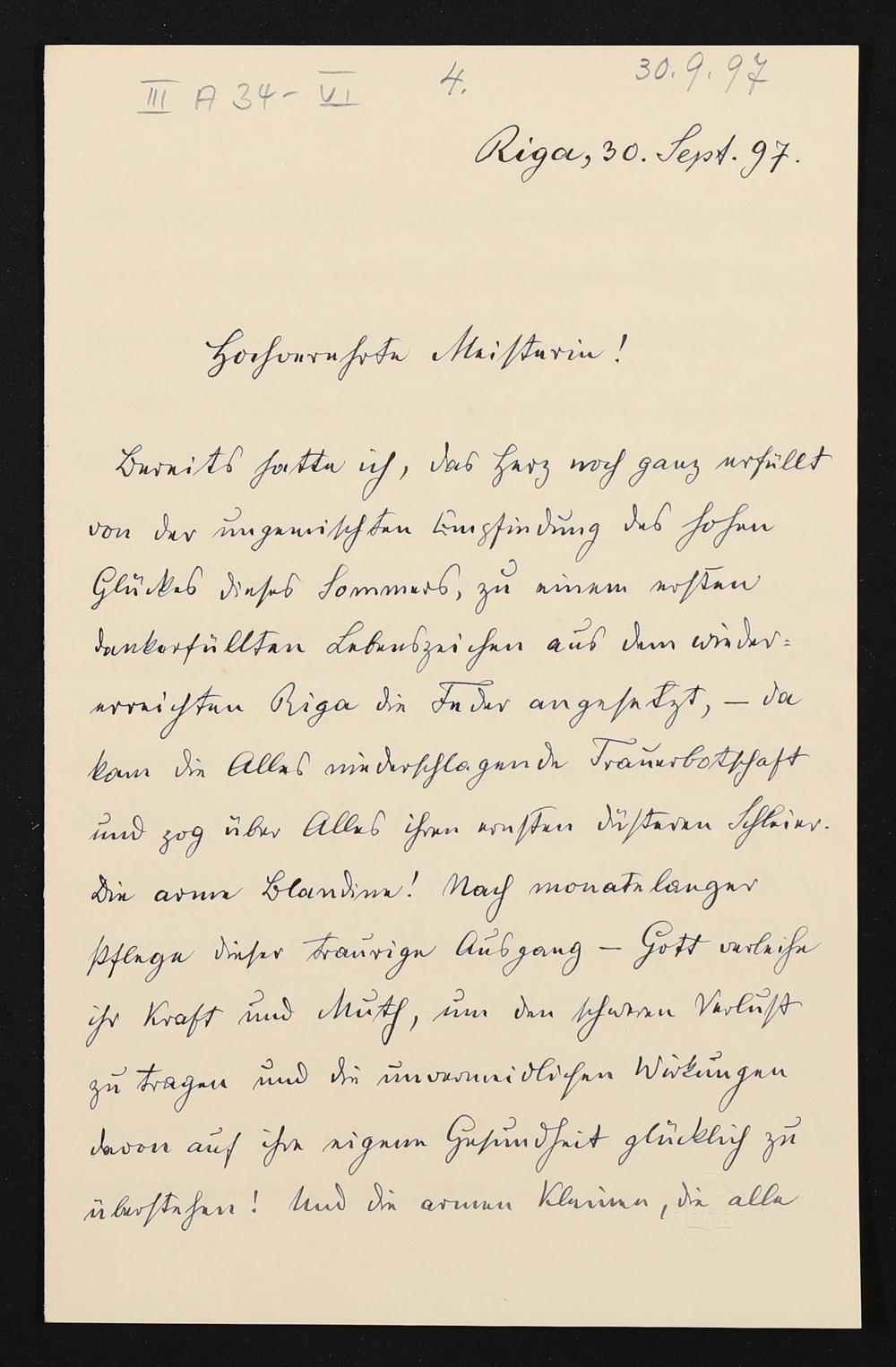 eigenhändiger Brief von Carl Friedrich Glasenapp an Cosima Wagner