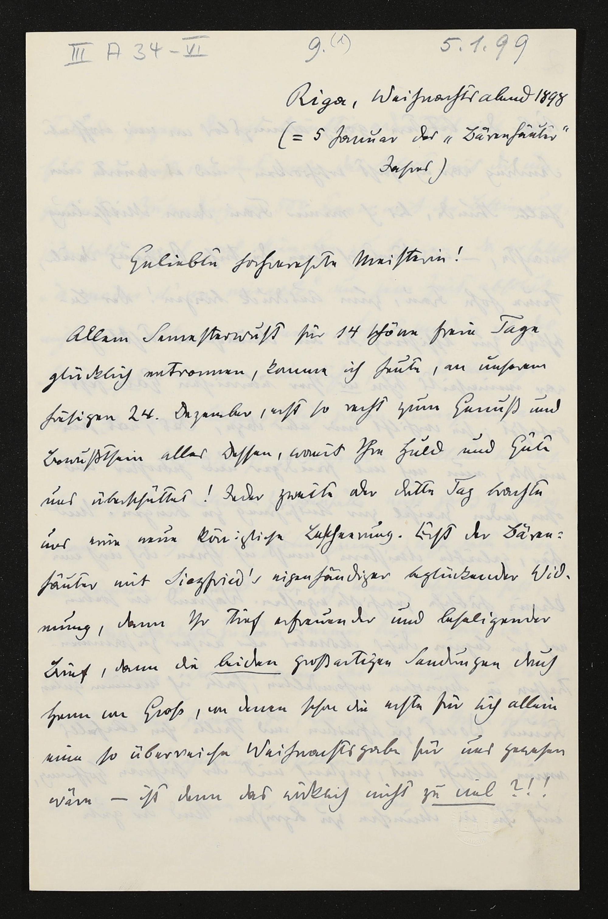 eigenhändiger Brief von Carl Friedrich Glasenapp an Cosima Wagner