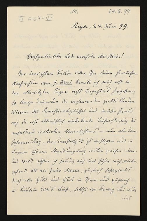 eigenhändiger Brief von Carl Friedrich Glasenapp an Cosima Wagner