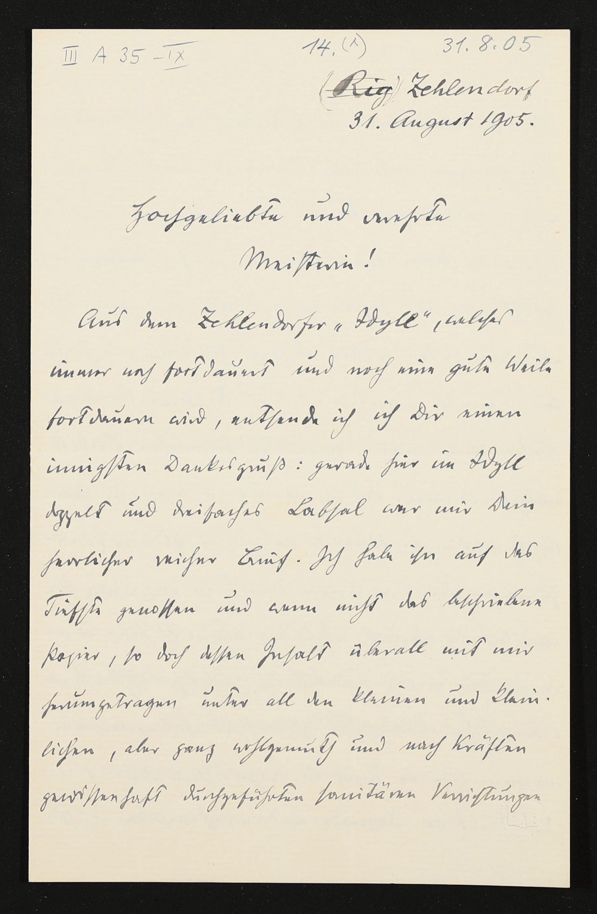eigenhändiger Brief von Carl Friedrich Glasenapp an Cosima Wagner