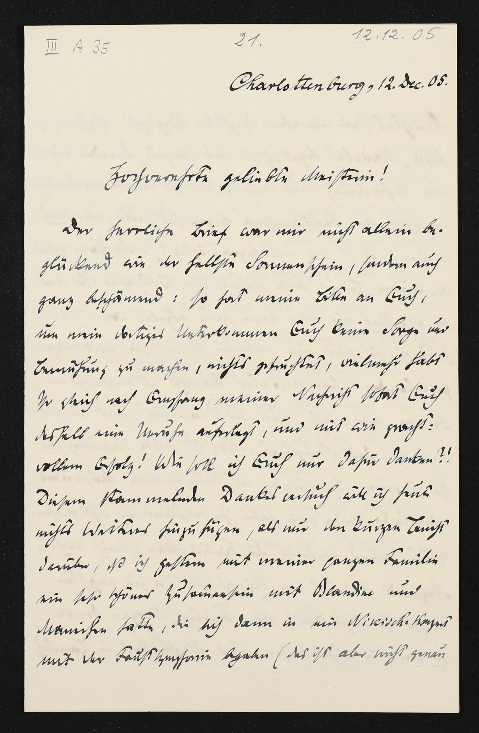 eigenhändiger Brief von Carl Friedrich Glasenapp an Cosima Wagner