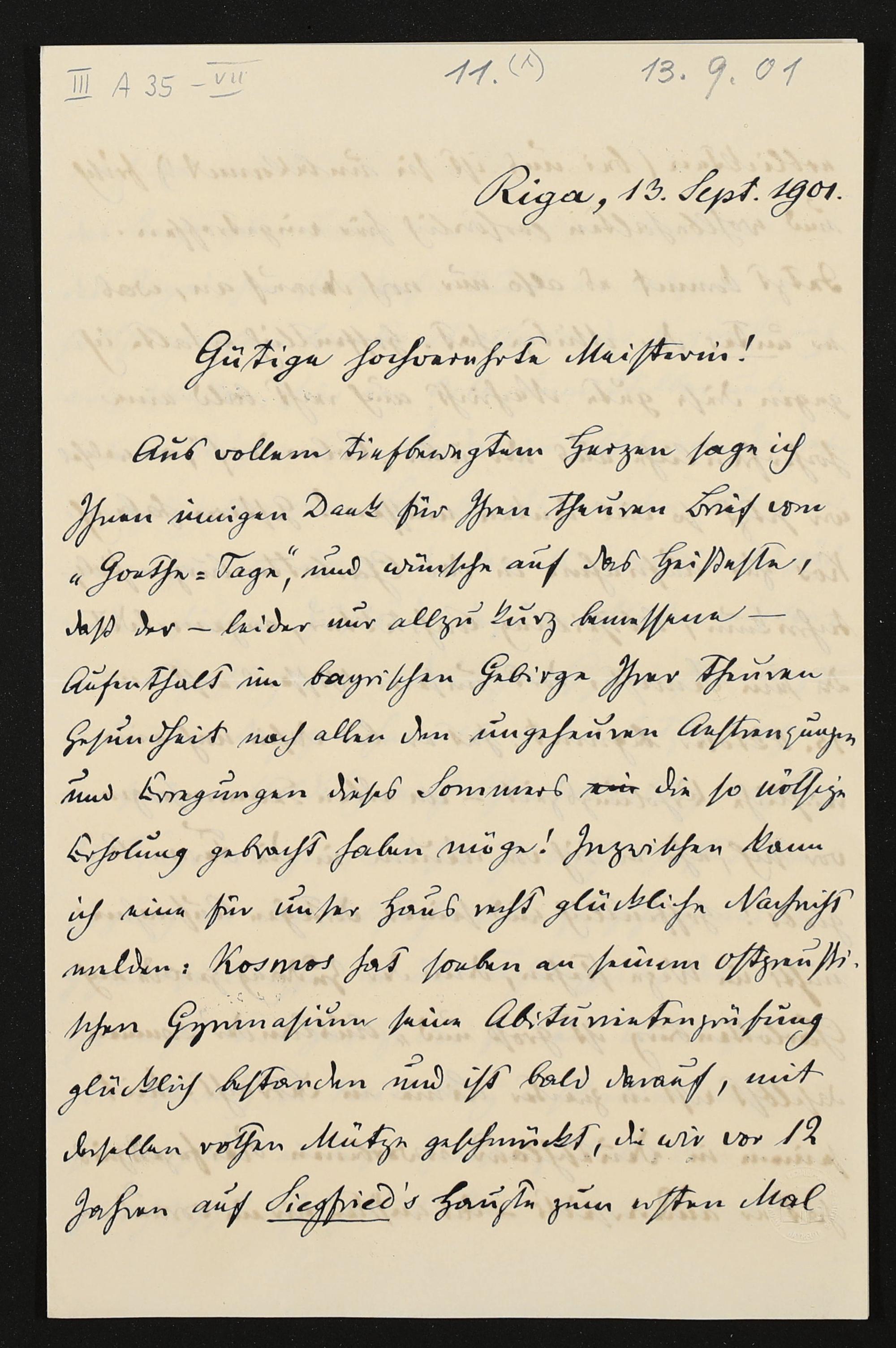 eigenhändiger Brief von Carl Friedrich Glasenapp an Cosima Wagner