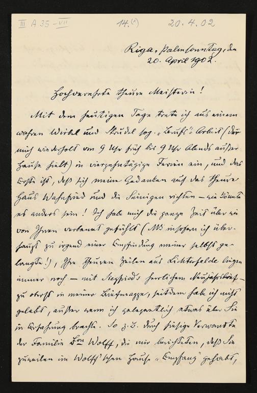 eigenhändiger Brief von Carl Friedrich Glasenapp an Cosima Wagner