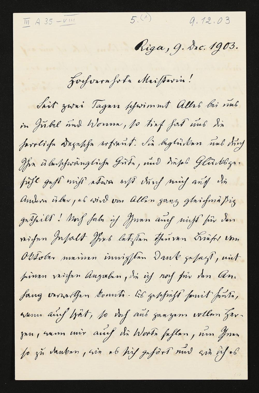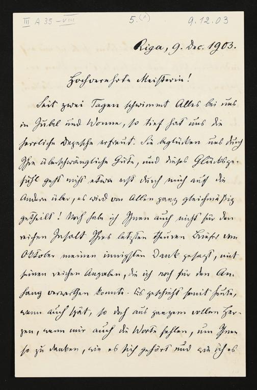 eigenhändiger Brief von Carl Friedrich Glasenapp an Cosima Wagner