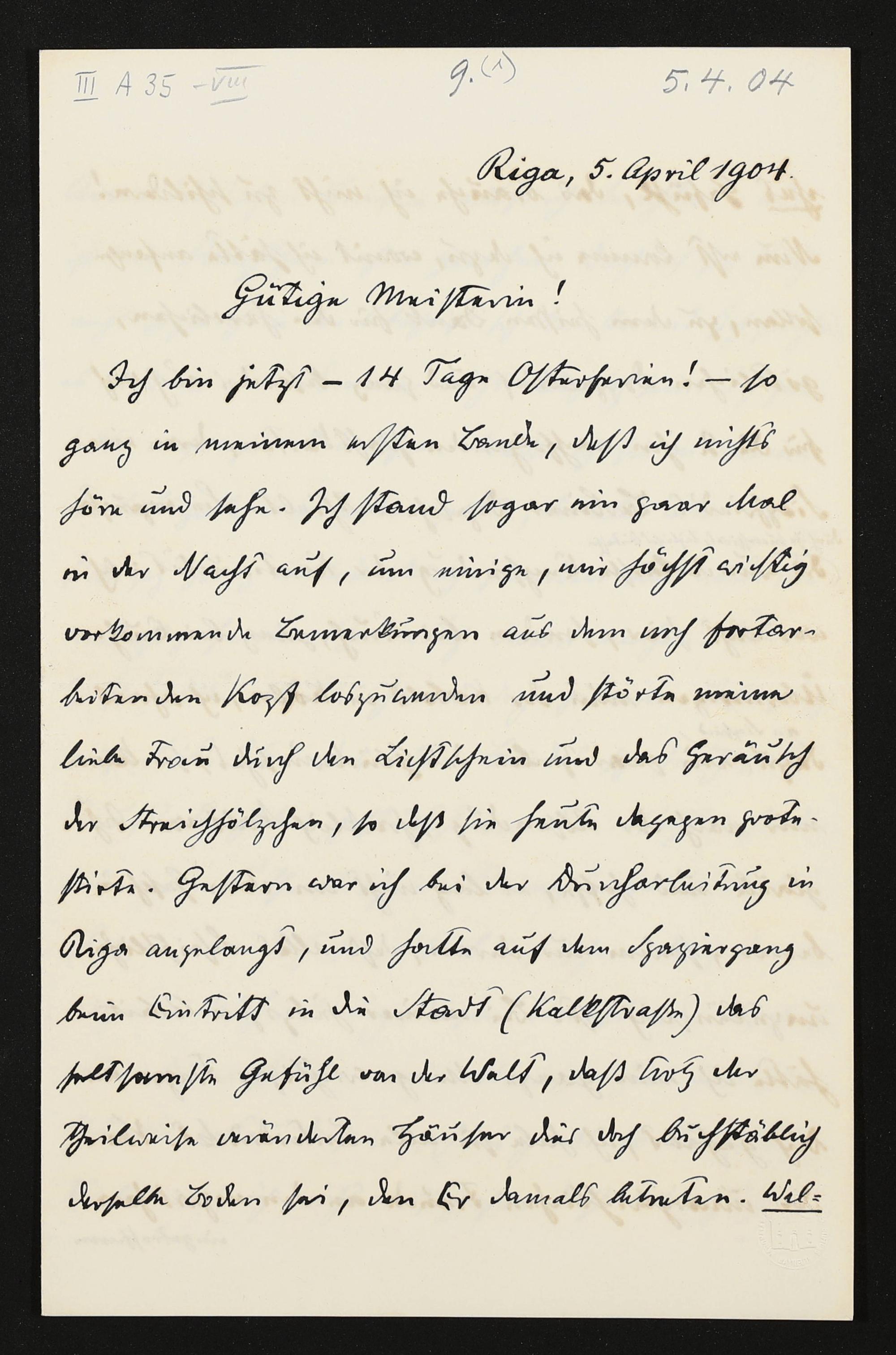 eigenhändiger Brief von Carl Friedrich Glasenapp an Cosima Wagner