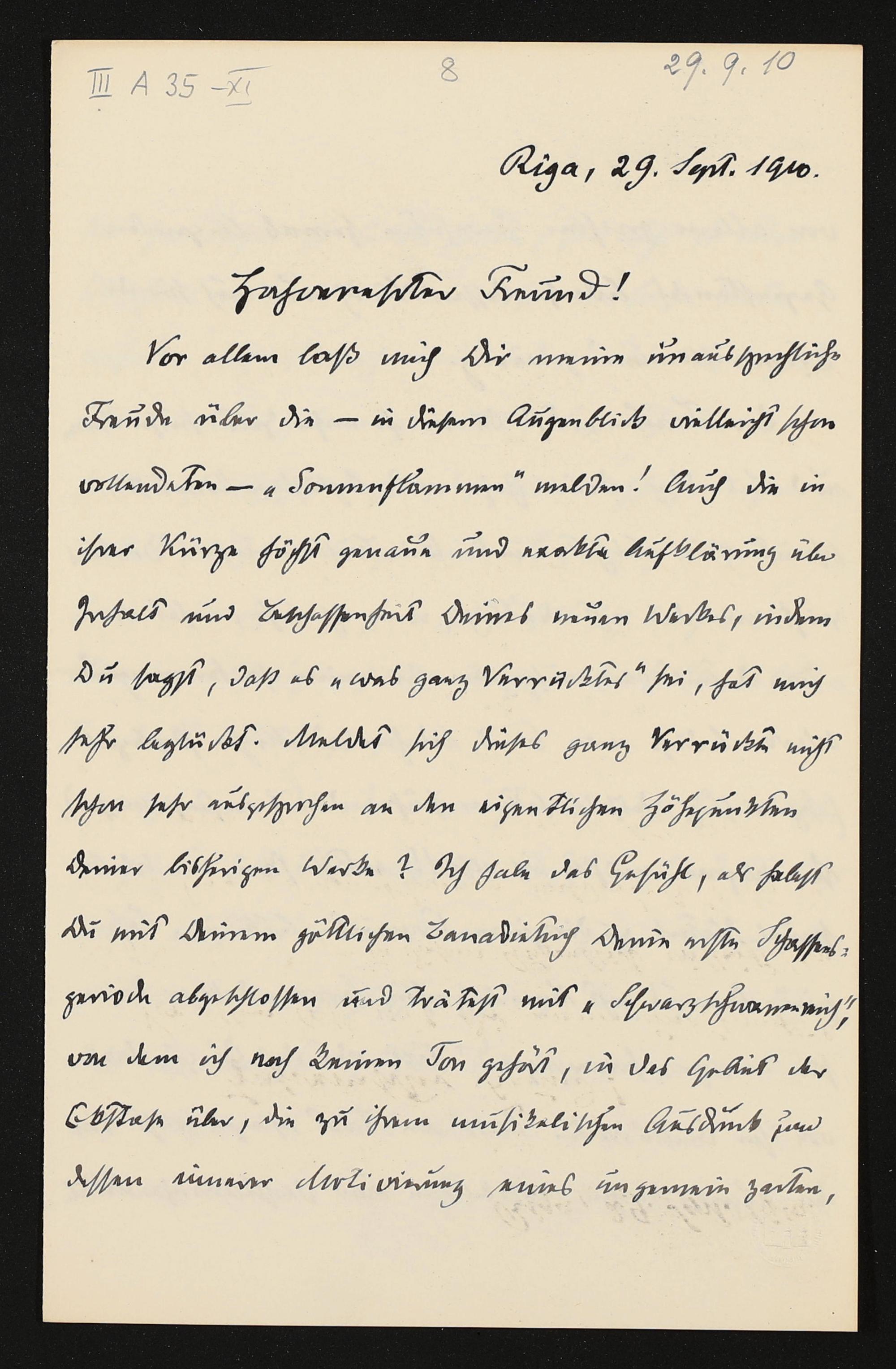 eigenhändiger Brief von Carl Friedrich Glasenapp an Siegfried Wagner