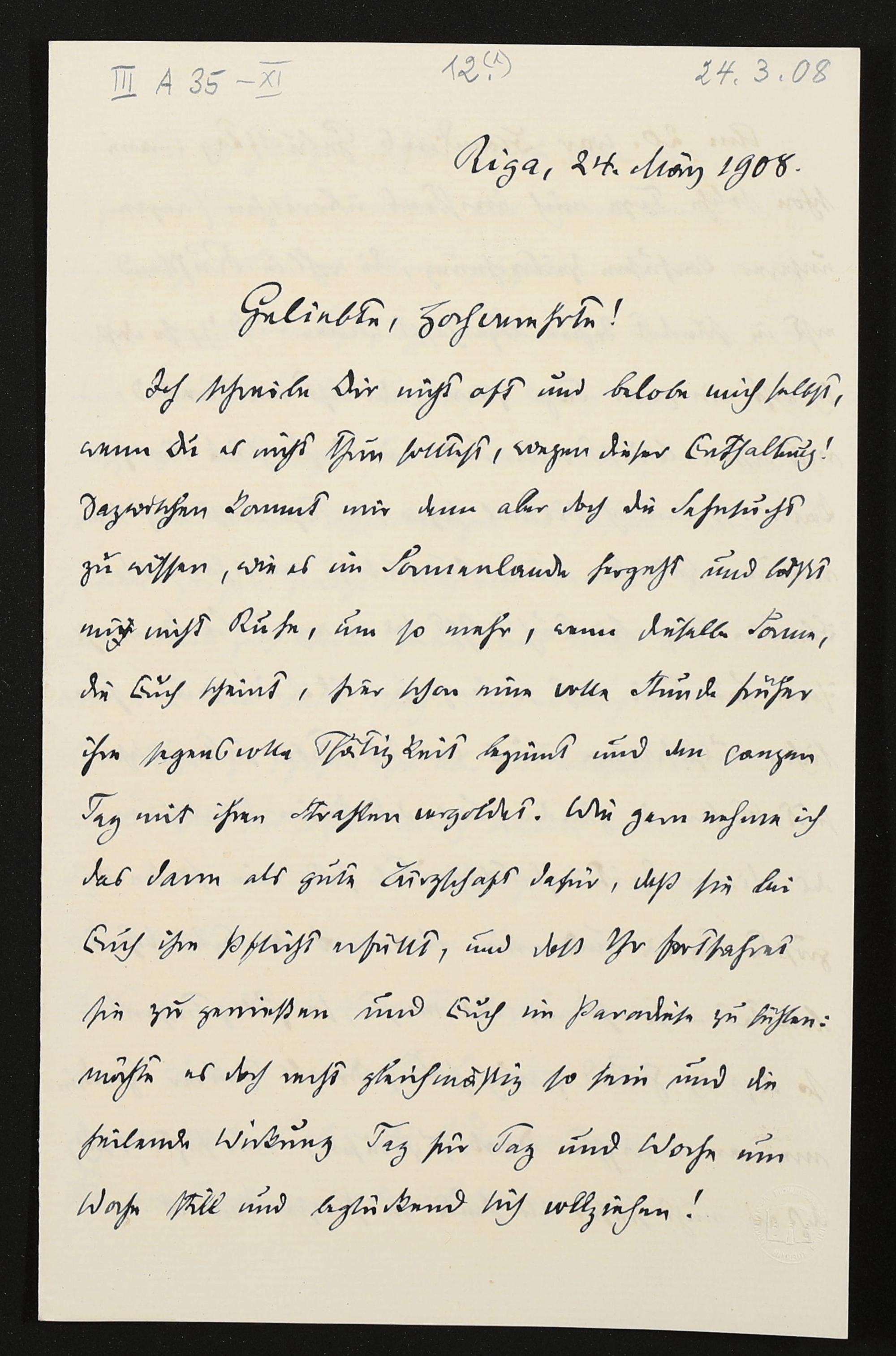 eigenhändiger Brief von Carl Friedrich Glasenapp an Eva Wagner
