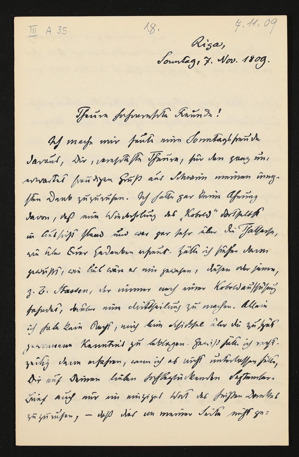 eigenhändiger Brief von Carl Friedrich Glasenapp an Eva Chamberlain