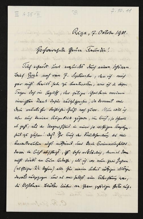 eigenhändiger Brief von Carl Friedrich Glasenapp an Blandine Gravina