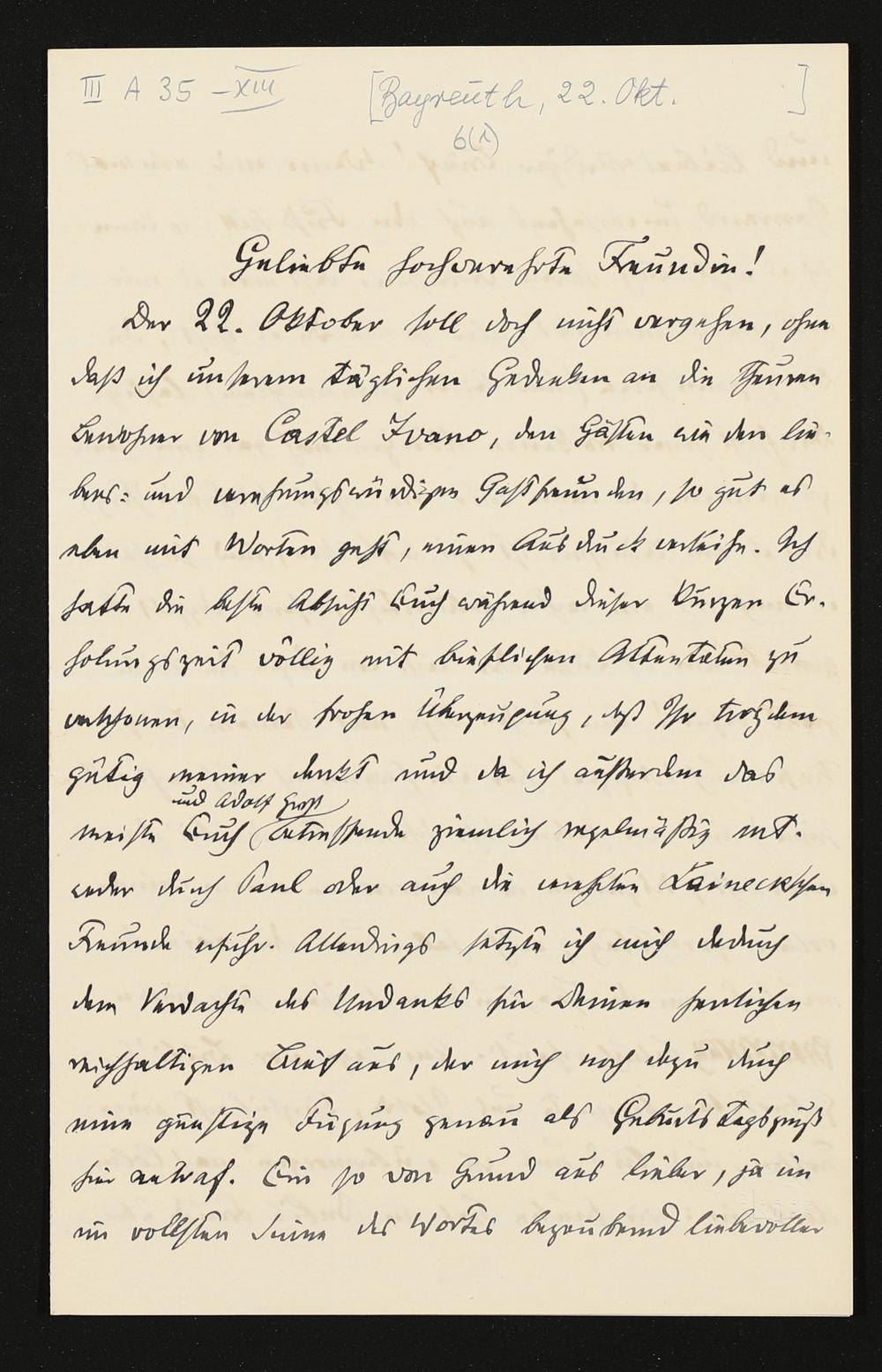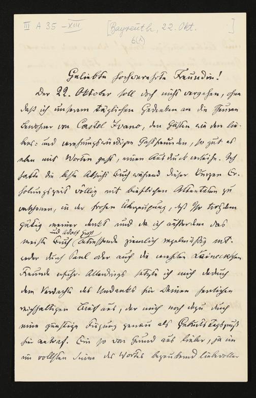 eigenhändiger Brief von Carl Friedrich Glasenapp an Cosima Wagner