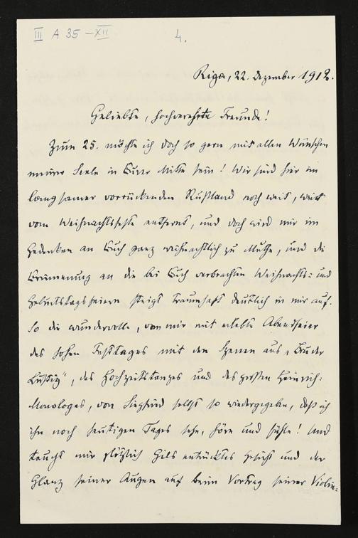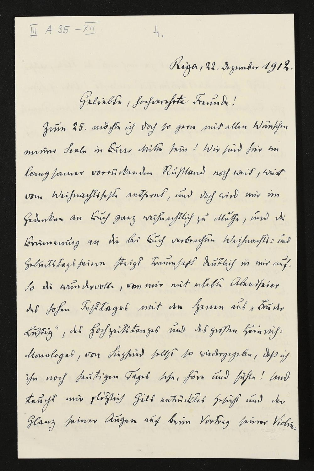 eigenhändiger Brief von Carl Friedrich Glasenapp ans Haus Wahnfried