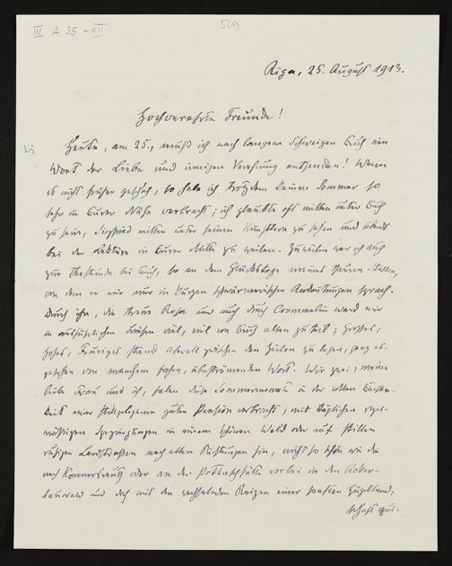 eigenhändiger Brief von Carl Friedrich Glasenapp ans Haus Wahnfried