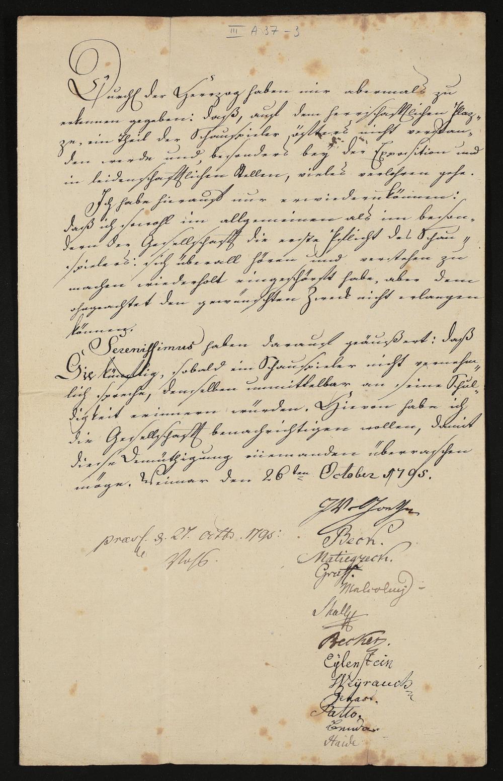 Dokument von Johann Wolfgang von Goethe aus dem Jahr 1795