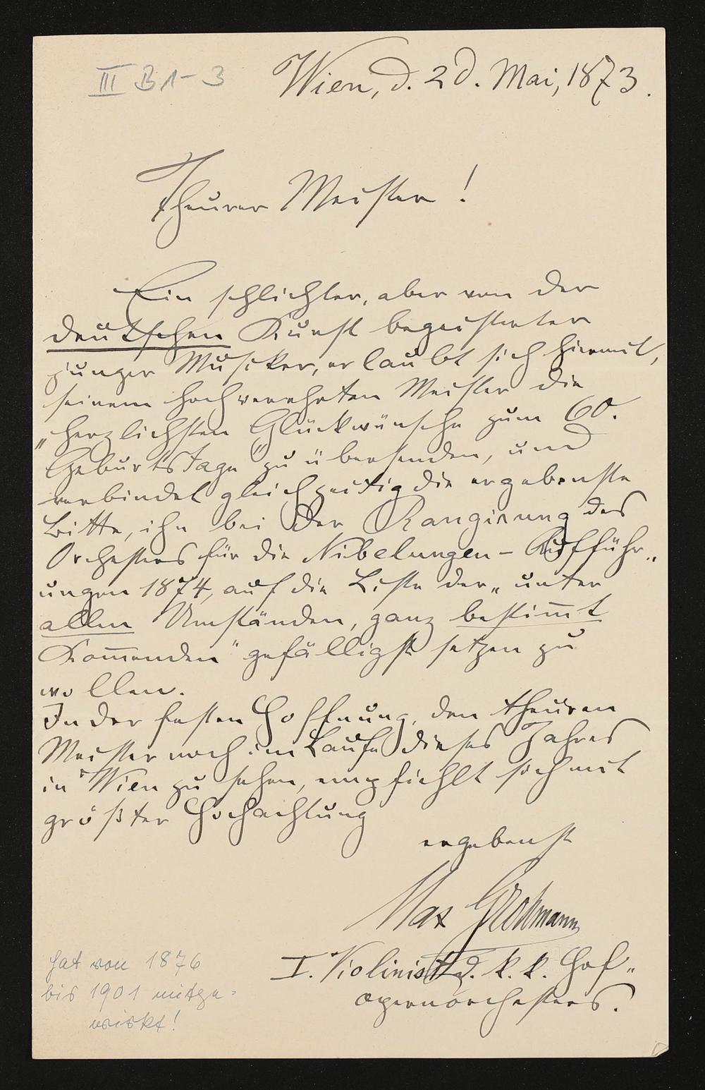 eigenhändiger Brief von Max Grohmann an Richard Wagner