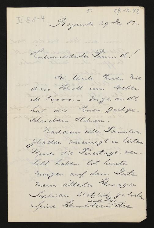 eigenhändiger Brief von Adolf von Gross an Richard Wagner